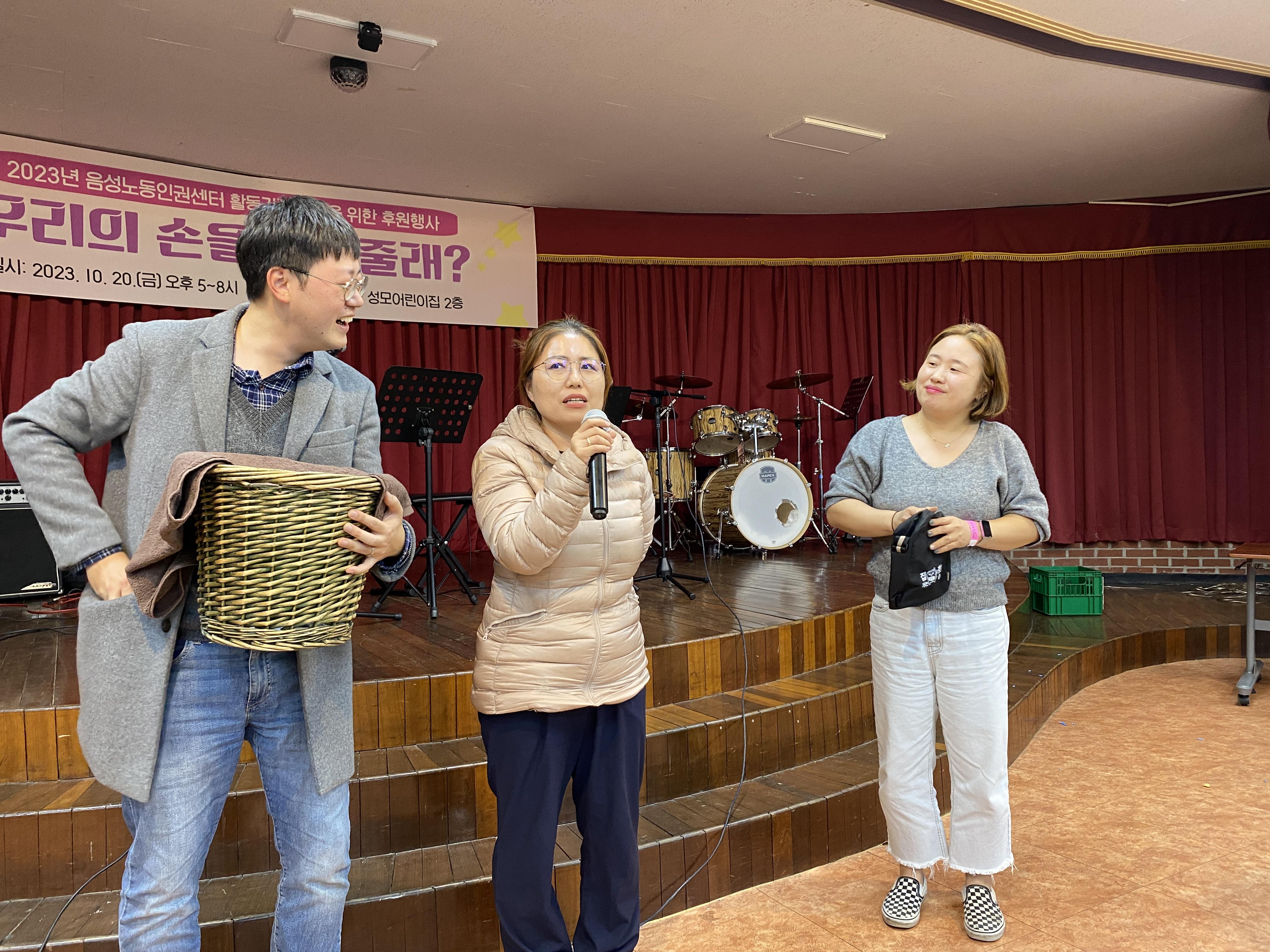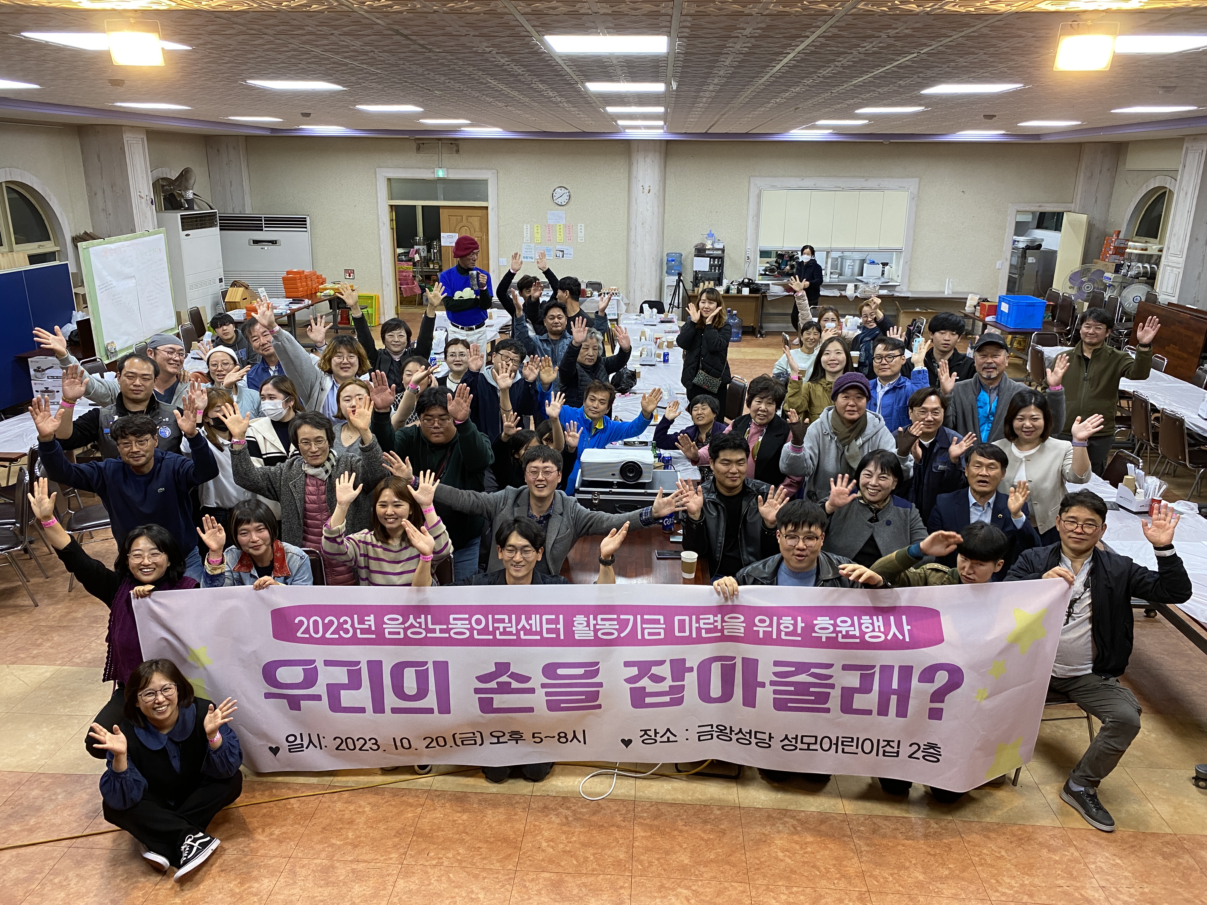 2023년 음성노동인권센터 활동기금 마련을 위한 후원행사 "우리의 손을 잡아줄래?"가 많은 분들의 수고와 관심 속에서 성황리에 끝났습니다. 생업으로 바쁘신 와중에 정말 많은 분들이 행사장에 찾아와주셨어요. 우리는 '노동인권'을 위해 한 자리에 모였고, '노조할 권리'를 한 목소리로 외쳤습니다. 어제 모인 우리는 땅을 일구는 농민이며, 가사노동자이고, 마트, 구내식당, 은행, 주유소, 청소업체, 학교, 보건소, 군청, 공장, 방문요양센터, 언론사, 시민단체, 정당 등 다양한 일터에서 일하는 노동자들입니다. 맛있는 음식, 다채로운 공연, 경품, 그리고 우리의 이야기가 꽃피우는 아름다운 시간이었습니다. 경제 위기, 기후, 생태위기 그리고 전쟁이 전 세계 민중을 위협하고 있는 참혹한 시절에 이토록 명랑한 사람들과 함께 할 수 있어 정말 기뻤습니다.