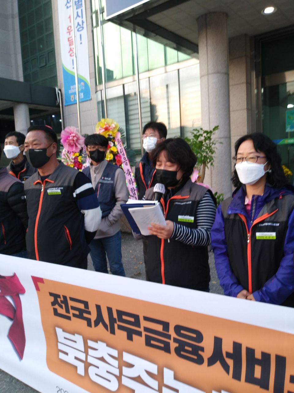난생 처음 단체교섭 요구를 받아본 조합장은 당혹스러워했고 피하기만 했어요. '노조만 안 하면 뭐든지 다해주겠다'며 애원을 했어요. 이건 지금도 마찬가지라고 해요. 조합장은 수 차례 열린 교섭에 단 한 번도 참석하지 않았어요. 오히려 단체교섭을 훼방하기 위해 현금을 뿌리는 등 몰상식한 짓도 많이 했어요. 작년 12월 말 추운 겨울에 충주노동청 앞에서 교섭해태, 노동조합에 대한 지배개입하는 조합장을 고발하는 기자회견을 갖기도 했어요.(관련기사 아래) 이런 투쟁을 거듭하면서 충북지방노동위원회의 조정을 거쳐 마침내 첫번째 임단협을 맺었습니다.