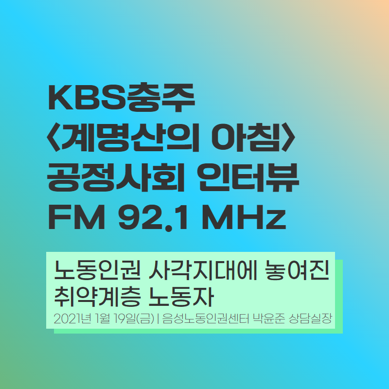 | [라디오] 음성군외국인지원센터 직원 해고 사태(21.2.26.) (0) | 2021.02.26 |