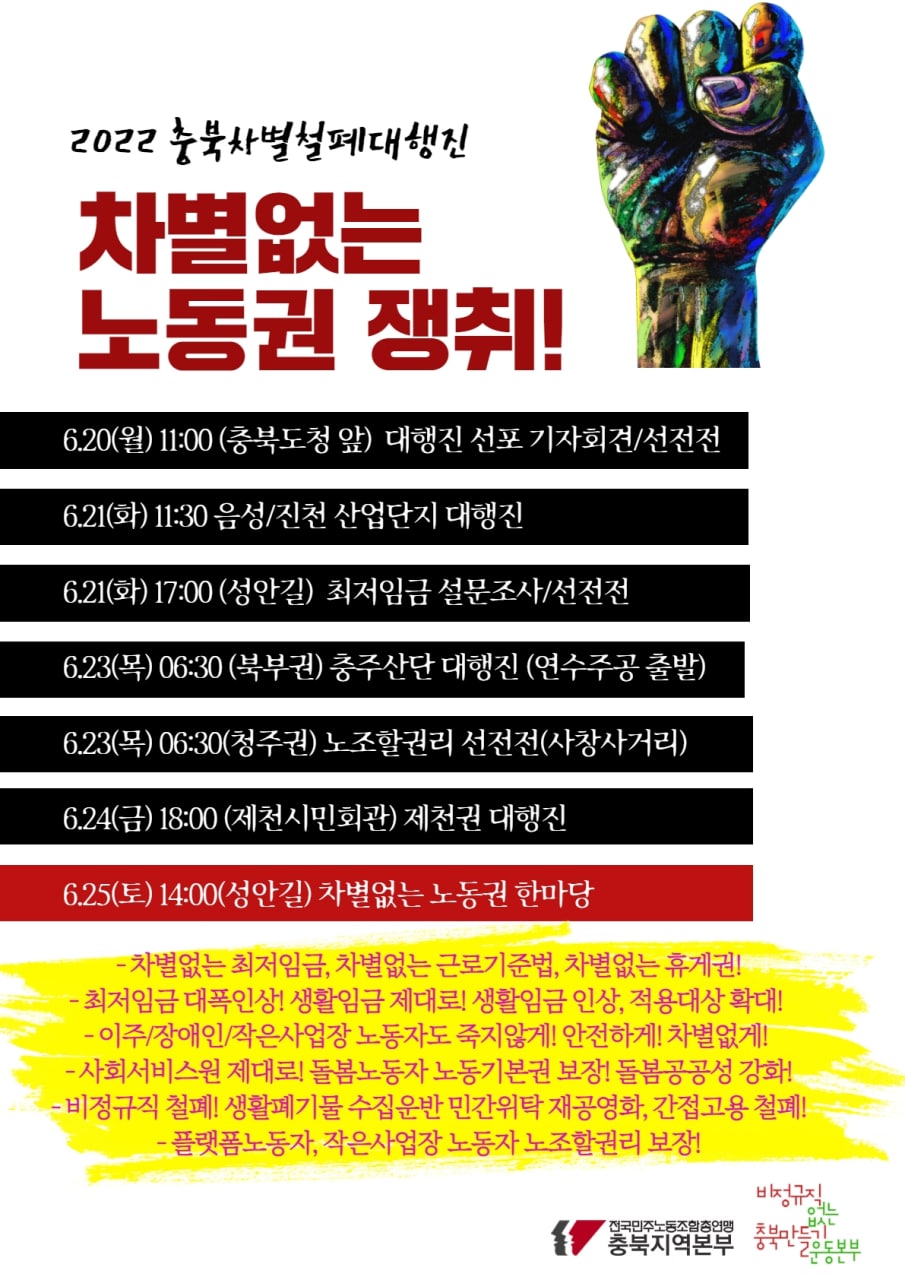 민주노총 충북본부와 비정규직없는 충북만들기 운동본부, 금속노동조합 대전충북지부, 음성노동인권센터, 음성노동자권리찾기사업단 꿈틀, 커피차 사장님 등 많은 분들이 함께 해주셨습니다.