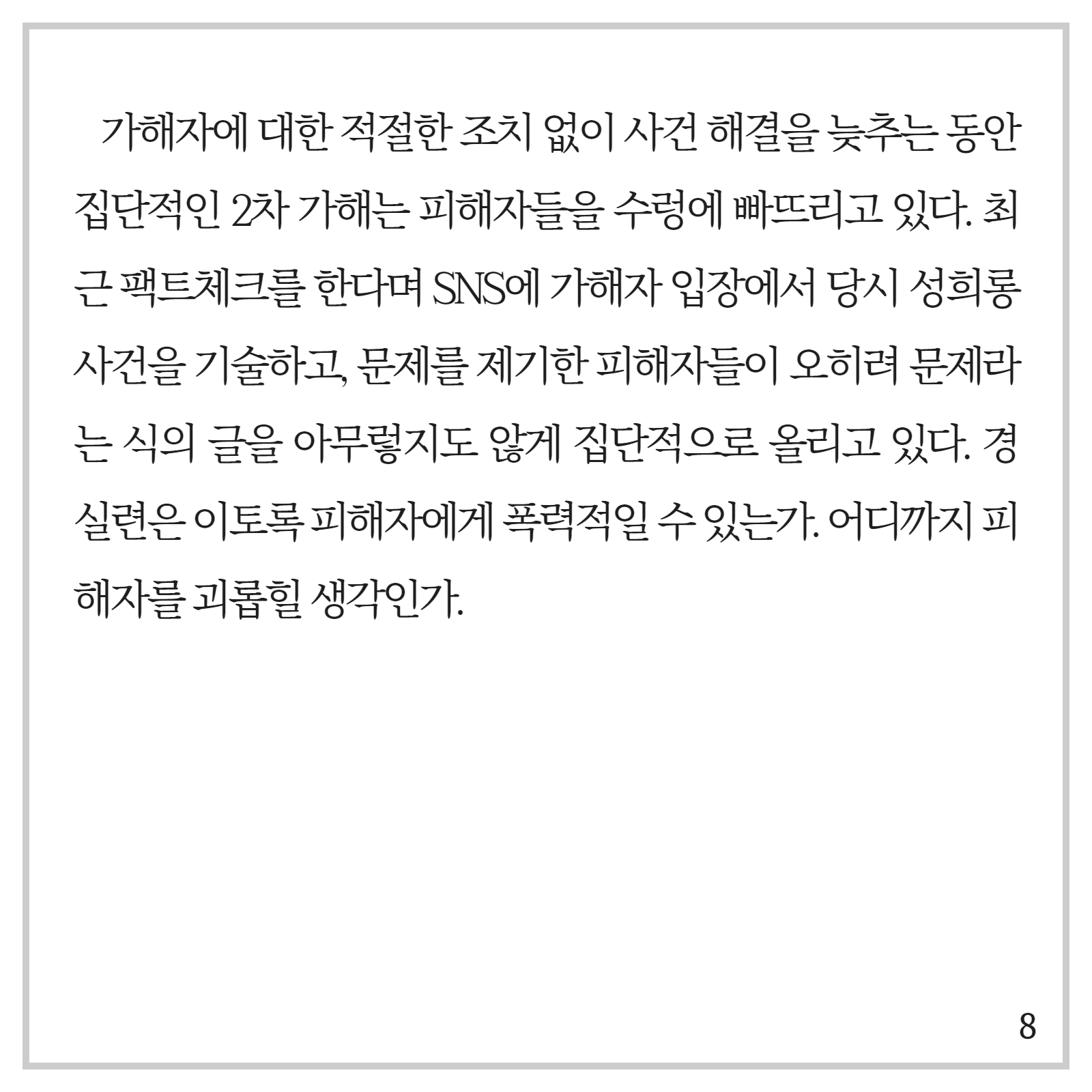 | <성명서>성희롱 사건에 제대로 대응하지 않는 경실련도 가해자다 (0) | 2020.12.02 |