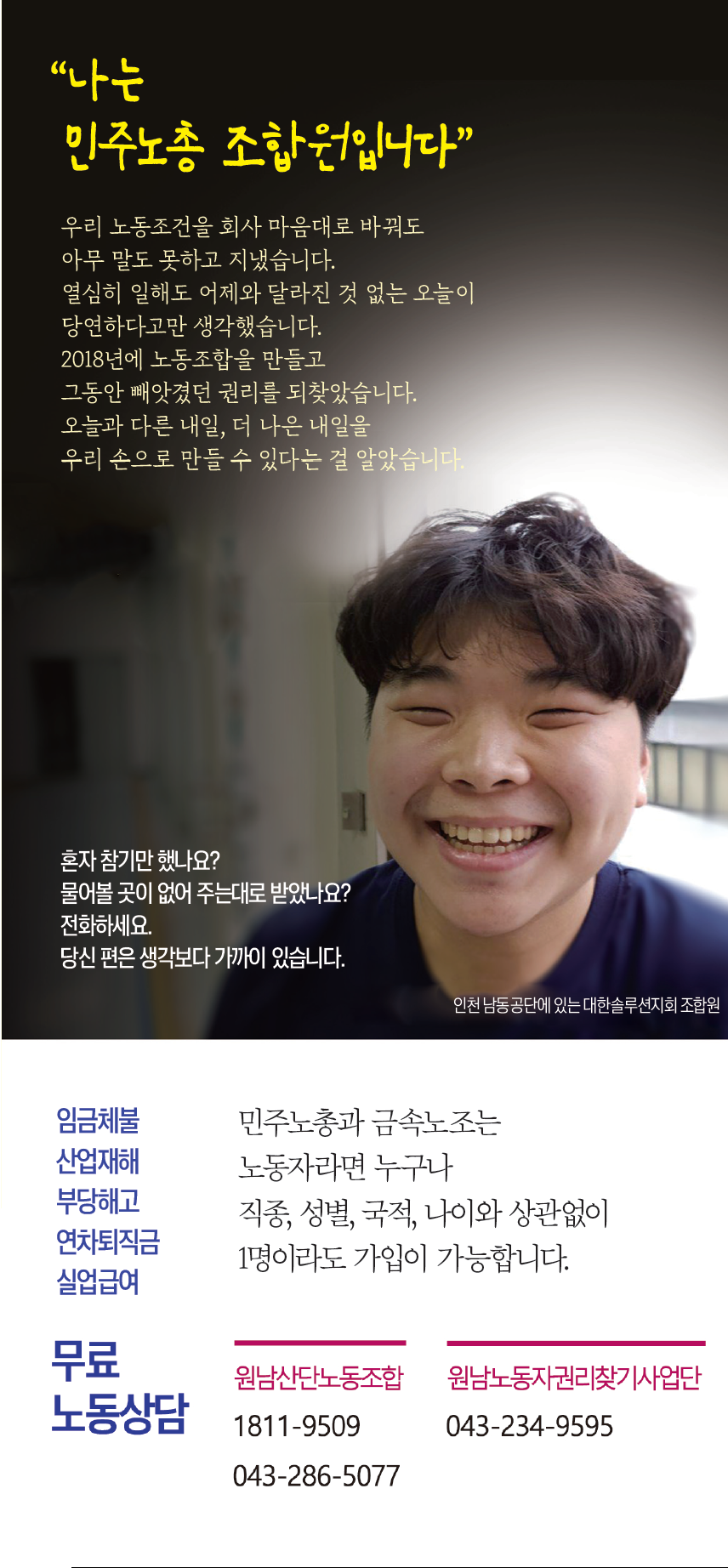민주노총 금속노조 인천지부에서 제작, 대전충북지부와 원남산단노동조합에서 배포한 것임을 밝힙니다.