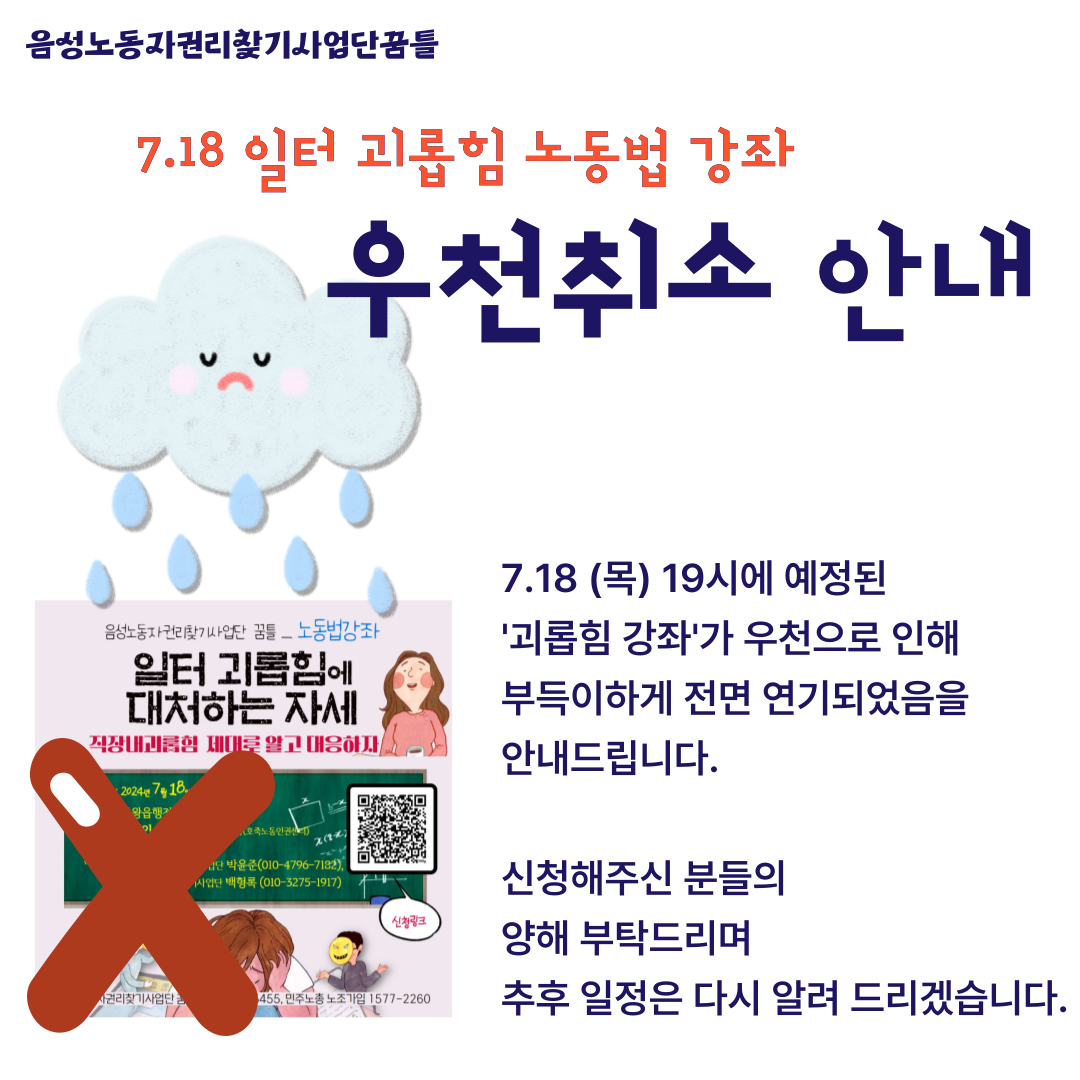 | [꿈틀 강좌] 직장 내 괴롭힘, 제대로 알고 대응하자! (1) | 2024.07.12 |