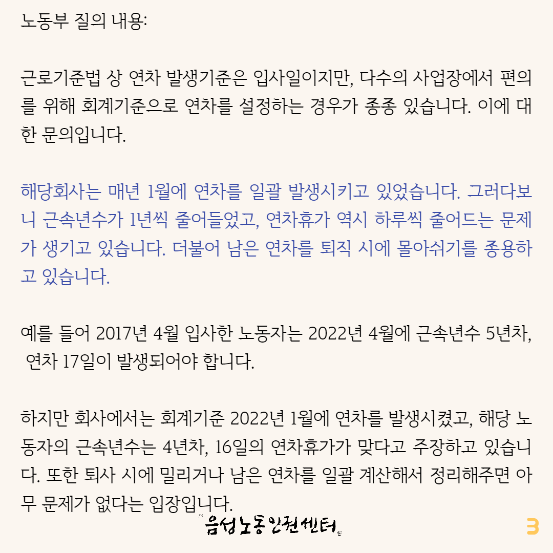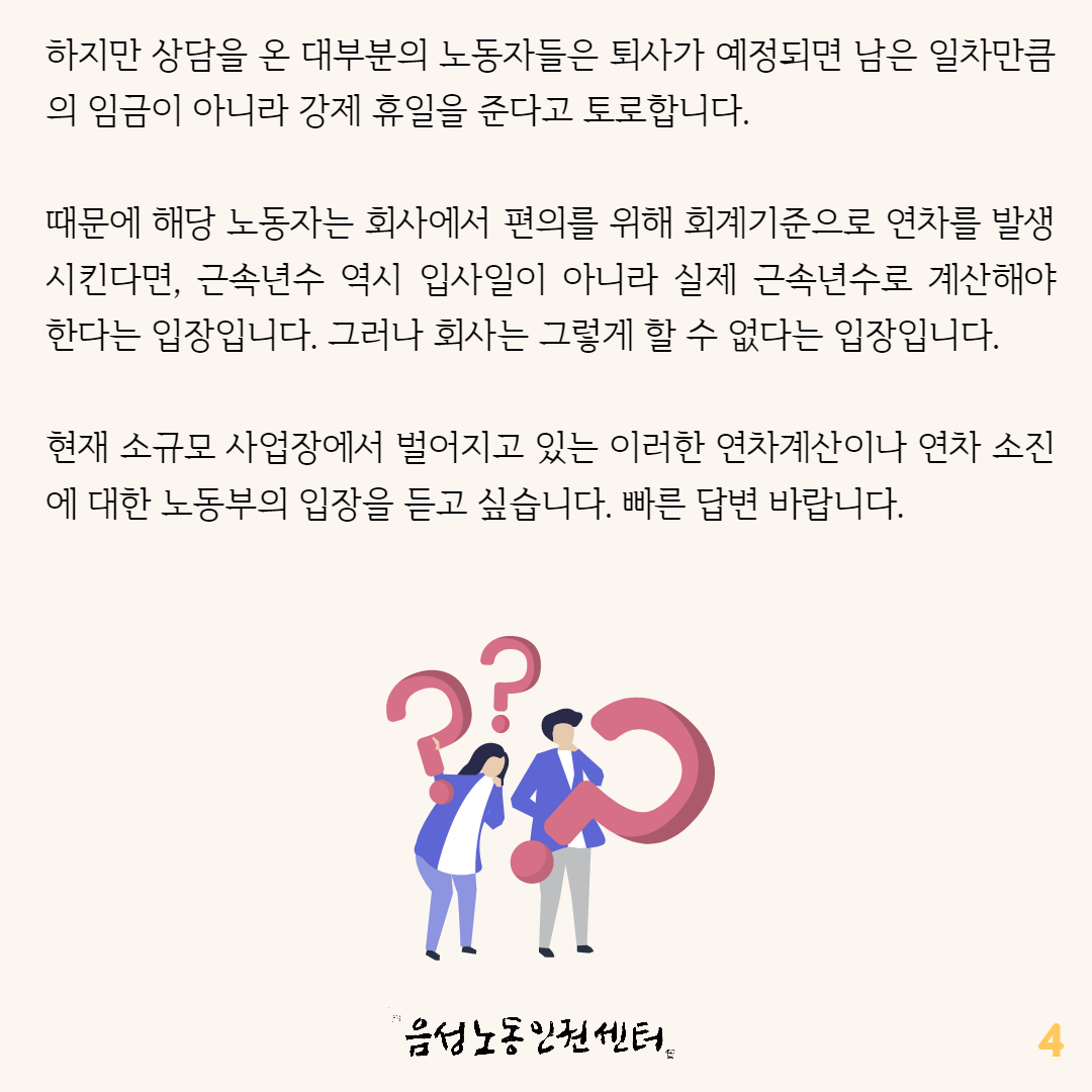 지난 번 연차휴가와 관련한 카드뉴스가 나간 후 많은 문의가 이어졌습니다.