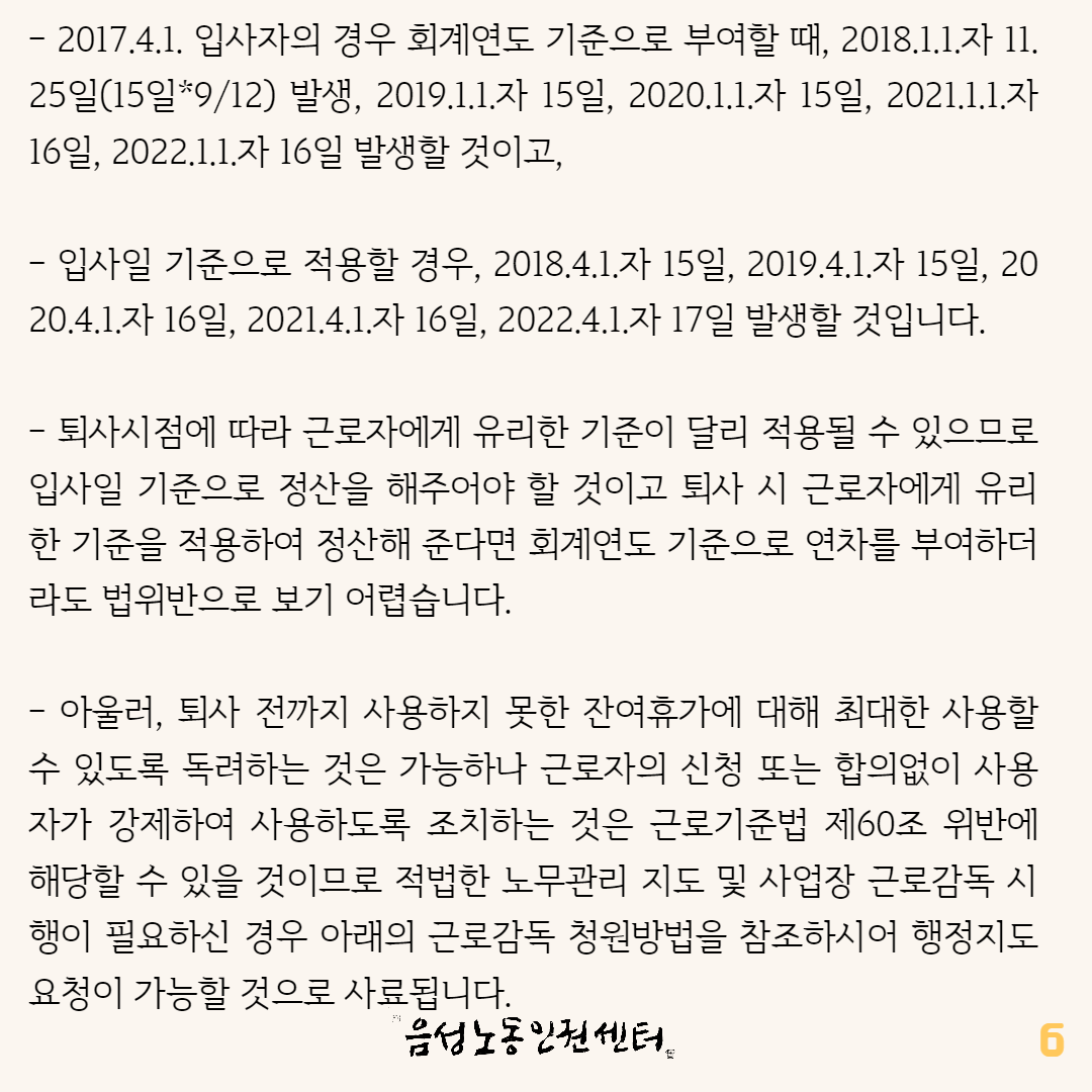 지난 번 연차휴가와 관련한 카드뉴스가 나간 후 많은 문의가 이어졌습니다.