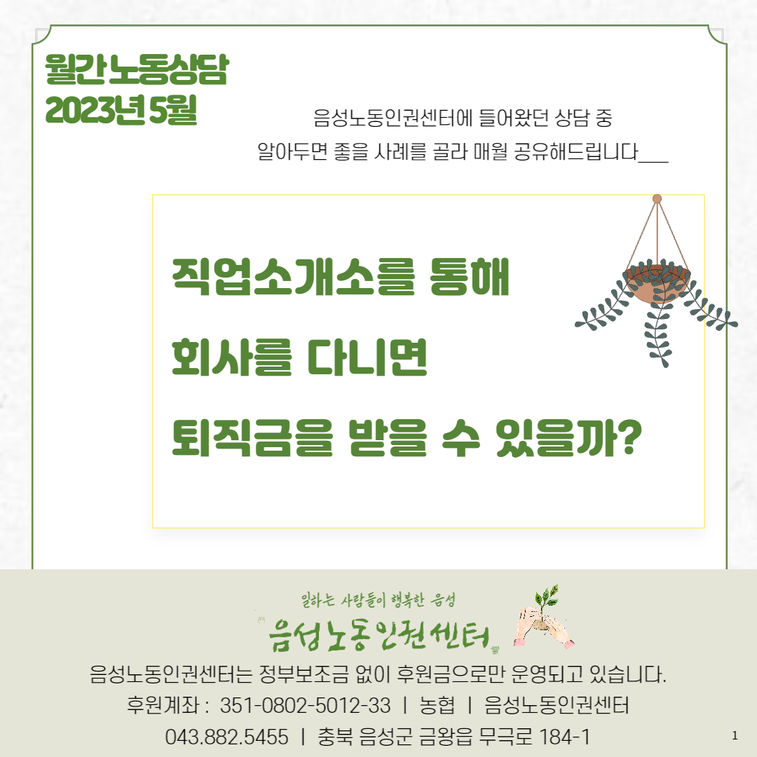 [월간노동상담-5월]일용직도 퇴직금을 받을 수 있을까?
