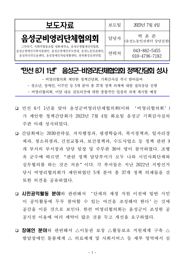 | [보도자료] 음성군 생활임금조례 주민 청구인 명부 제출 기자회견 개최 (0) | 2023.06.22 |