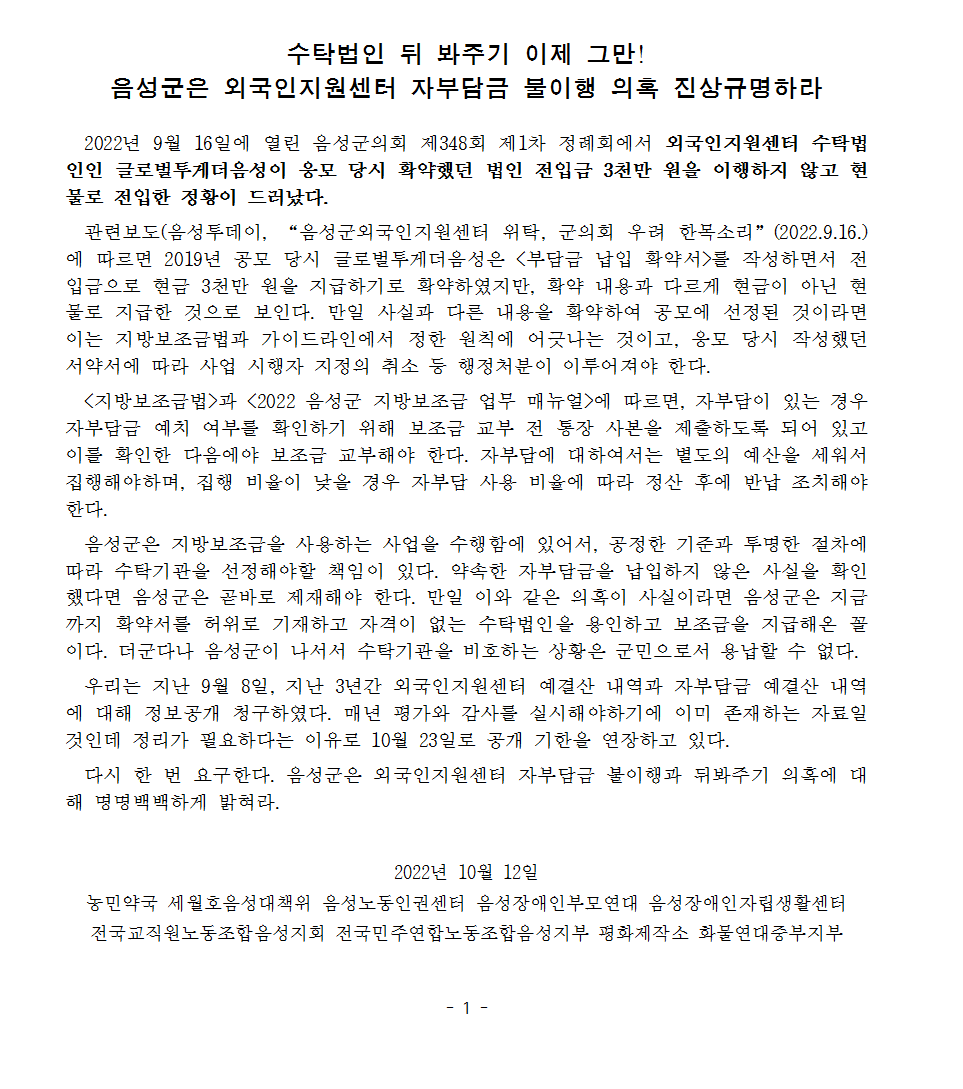 '지역 행동 > 기자회견문, 보도자료' 카테고리의 다른 글