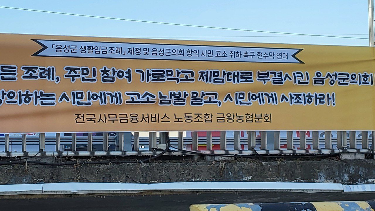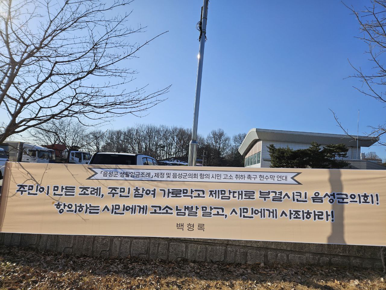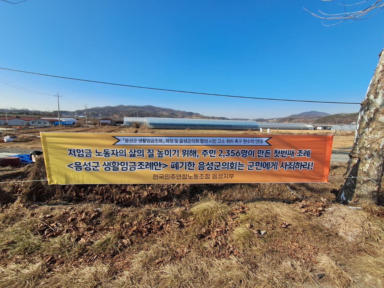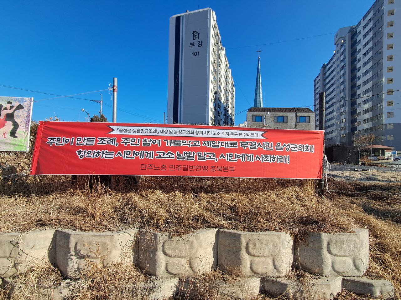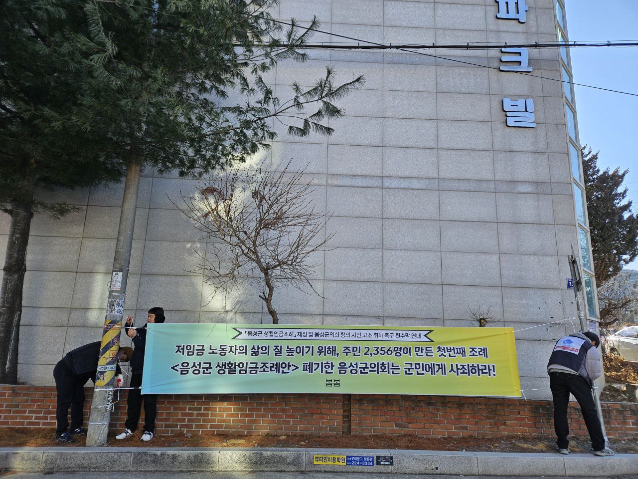 음성군 생활임금조례안를 부결시킨 음성군의회를 규탄하기 위해 2024년 12월 26일부터 2025년 1월 1일까지 규탄 현수막 연대 신청을 받았습니다. 그러자 전국에서 수많은 분들이 음성군의 풀뿌리 민주주의를 지키기 위한 손길을 건네주셨습니다.