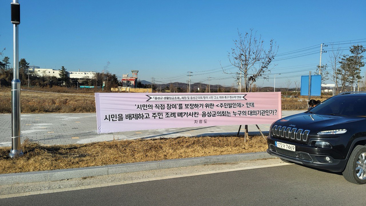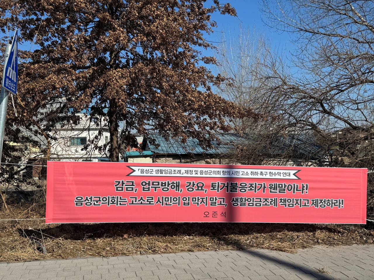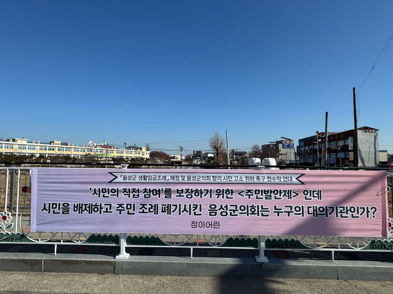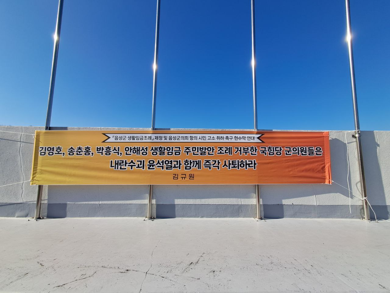 음성군 생활임금조례안를 부결시킨 음성군의회를 규탄하기 위해 2024년 12월 26일부터 2025년 1월 1일까지 규탄 현수막 연대 신청을 받았습니다. 그러자 전국에서 수많은 분들이 음성군의 풀뿌리 민주주의를 지키기 위한 손길을 건네주셨습니다.