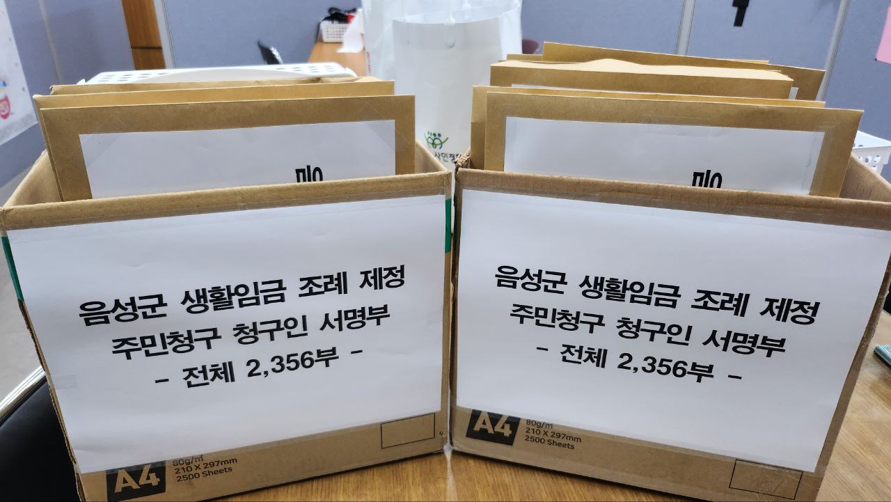 3개월 전 우리는 음성지역 노동자들의 저임금과 소득 불평등을 조금이나마 해결하고자 음성군 생활임금조례 주민청구운동을 시작하였다. 우리는 생활임금조례의 내용과 필요성을 주민들에게 설명하고, 공감대를 확산하기 위해서, 그리고 많은 주민들이 생활임금조례를 제정하는 과정에 참여하는 직접 민주주의를 실현하기 위해 주민발안제도를 이용했다. 지난 3개월 동안 공단 앞에서, 마트와 편의점 앞에서, 거리에서, 모임이나 교육이 이루어지는 곳에서 주민들을 만났다. 축제와 장날 많은 이들을 만나 생활임금조례를 설명하고 서명을 받았다. 사회복지시설과 기관을 직접 방문해 그곳에서 일하고 있는 민간위탁 노동자들을 만나기도 했다. 이 과정에서 생활임금조례의 필요성에 공감하는 주민, 노동자들을 정말 많이 만날 수 있었다. 그들에게서 반 토막 난 기간제 공공일자리와 당연하다시피 최저임금을 지급하는 관행, 열악한 처우를 개선해야한다는 목소리를 들을 수 있었다. 노동조합 활동을 하고 있는 노동자들이 서명운동에 가장 먼저 앞장서며 더불어 살아가는 많은 이웃 주민과 노동자의 참여를 이끌어냈다. 군청을 통해서 일하고 있는 기간제 노동자들과 공장 노동자들, 아직 취업 전인 만 18세 이상 청소년과 2-30대 청년들, 장애인 노동자들, 민간위탁 기관과 업체 노동자들이 서명에 적극적으로 동참해주었고, 우리에게 아낌없는 지지와 격려를 보내주었다.