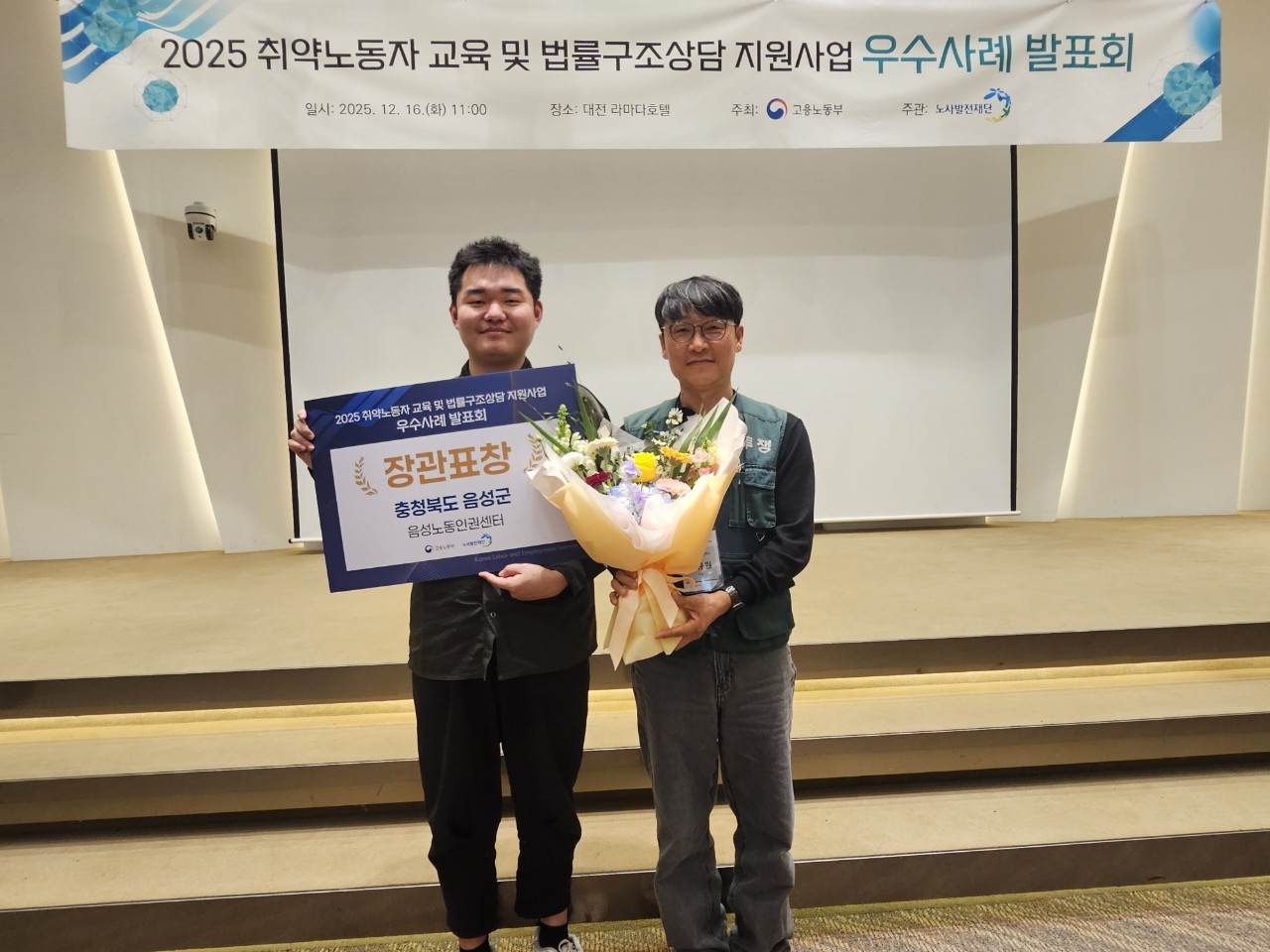 음성노동인권센터, ‘취약노동자 지원사업 우수사례’ 장관 표창 수상