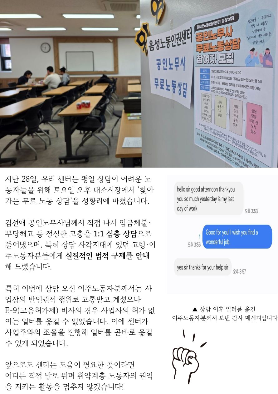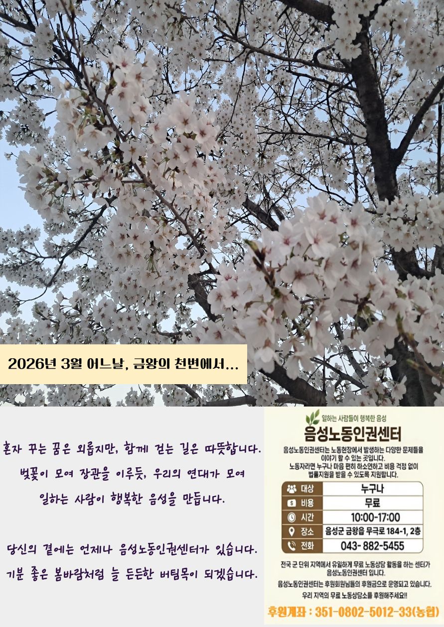 | 음성노동인권센터, 28일 대소시장 출장 노동상담 (0) | 2026.03.12 |