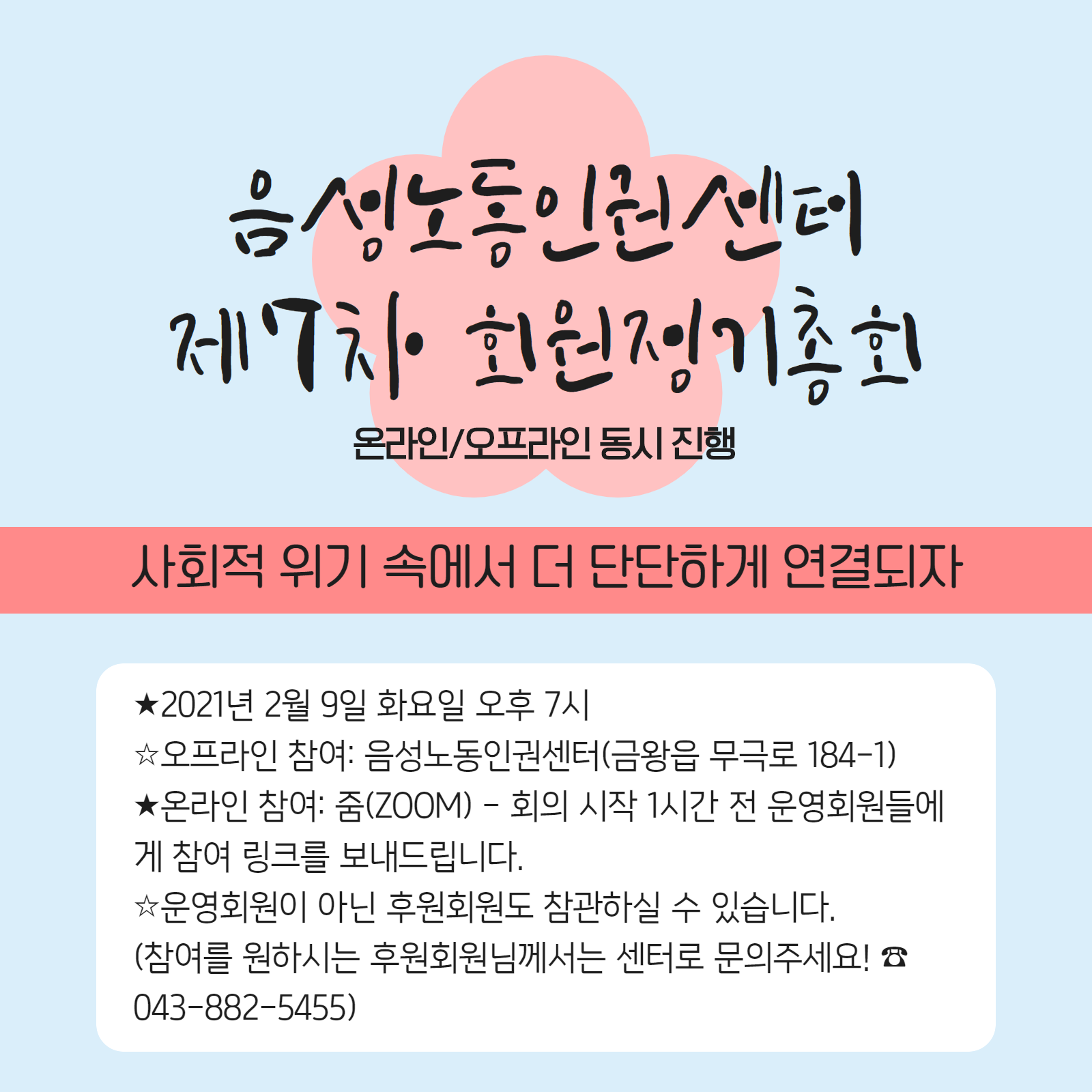 음성노동인권센터 제7차 회원정기총회 개최를 알립니다.