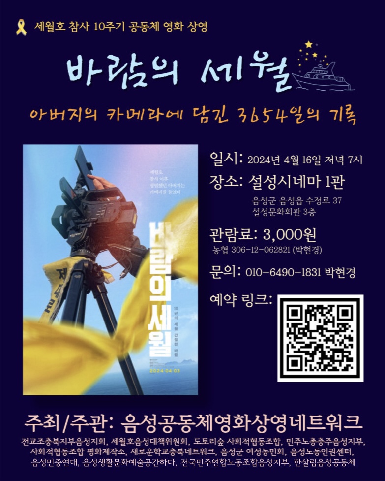 - 세월호 참사 10주기 공동체 영화 상영(4월 16일 화요일 19시시/ 설성시네마)