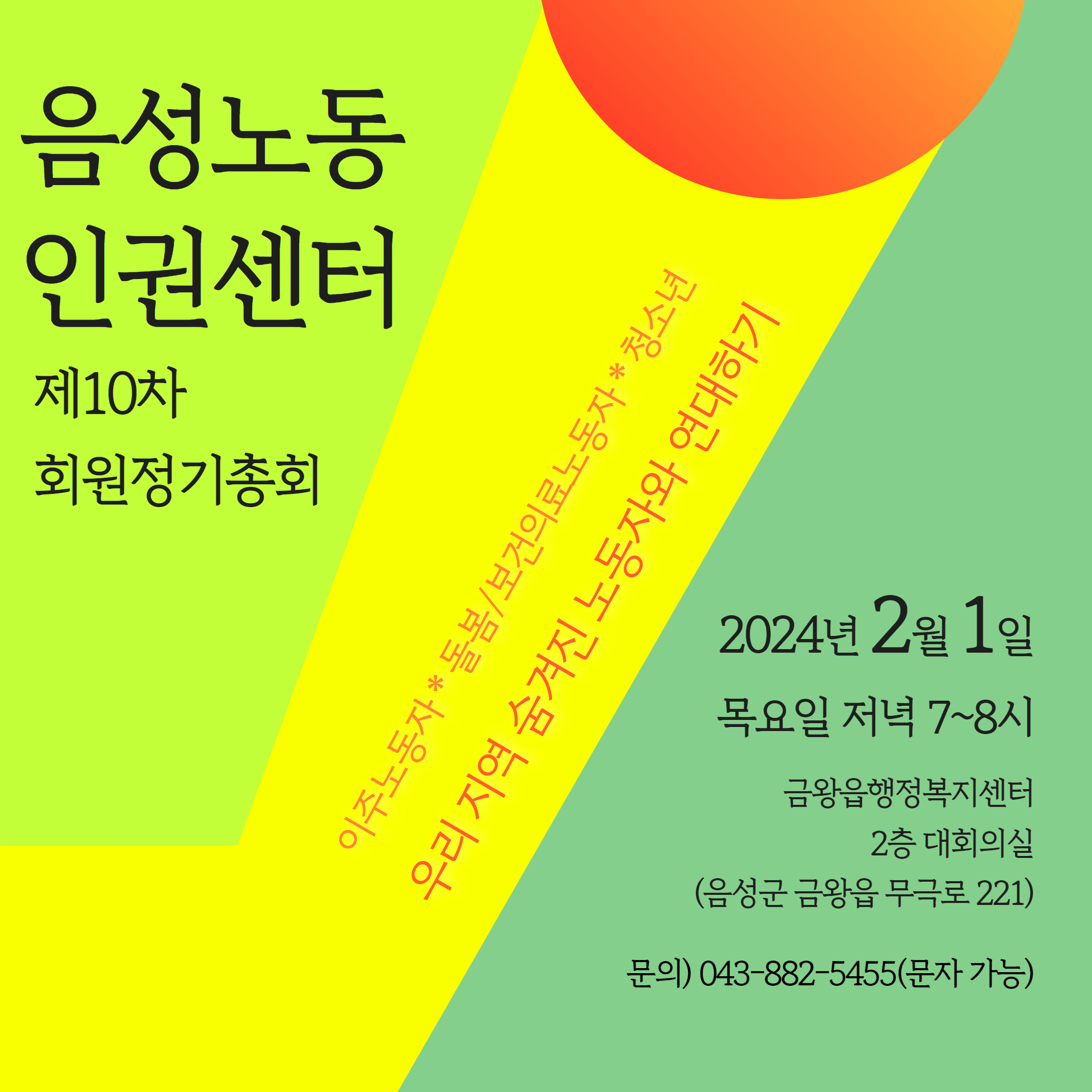 음성노동인권센터 제10차 회원정기총회에 초대합니다.
