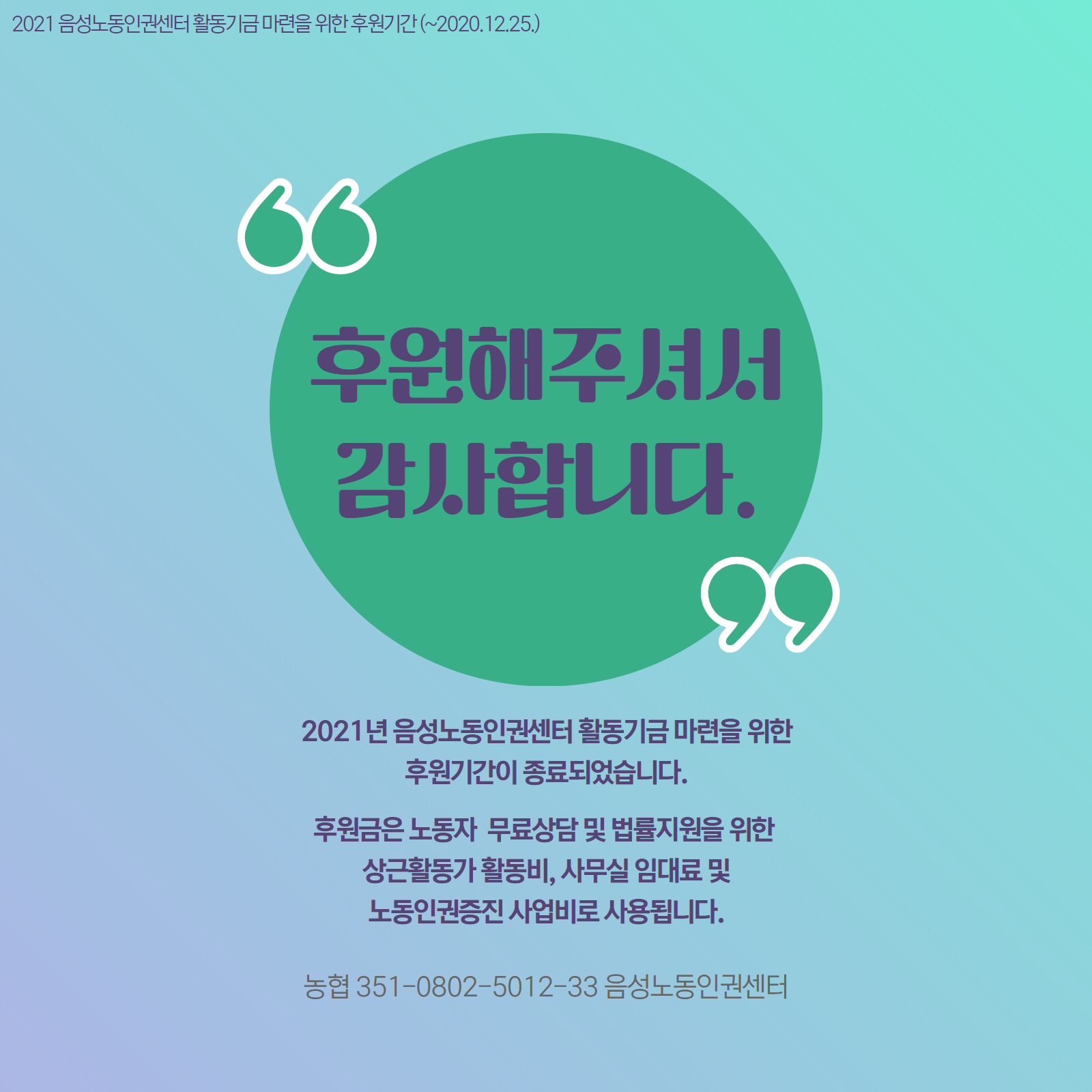 | 음성노동인권센터 제7차 회원정기총회 개최 (0) | 2021.01.26 |