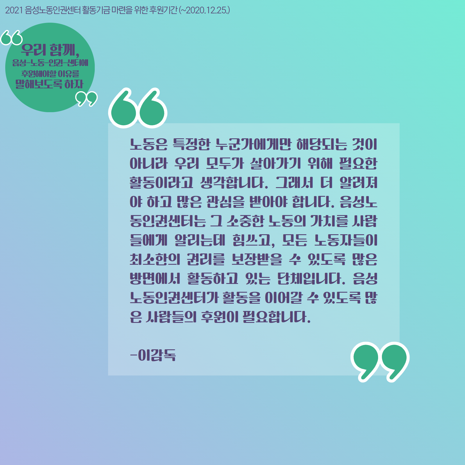 | 음성노동인권센터 제7차 회원정기총회 개최 (0) | 2021.01.26 |