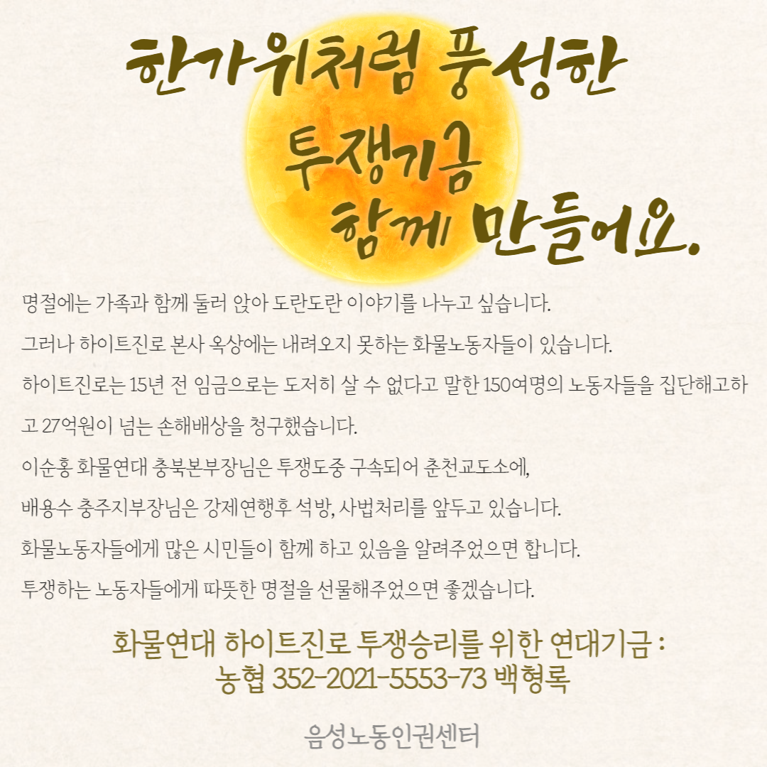 | 직장 내 괴롭힘에 맞서 싸우고 있는 노동자를 응원합니다!! (0) | 2024.05.21 |