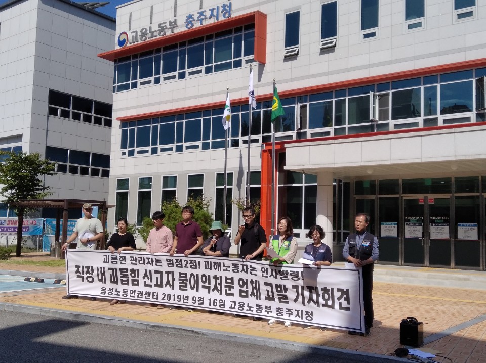 <활동사진> 직장 내 괴롭힘 피해자 불이익처분 업체 고발 기자회견(2019.9.16.)