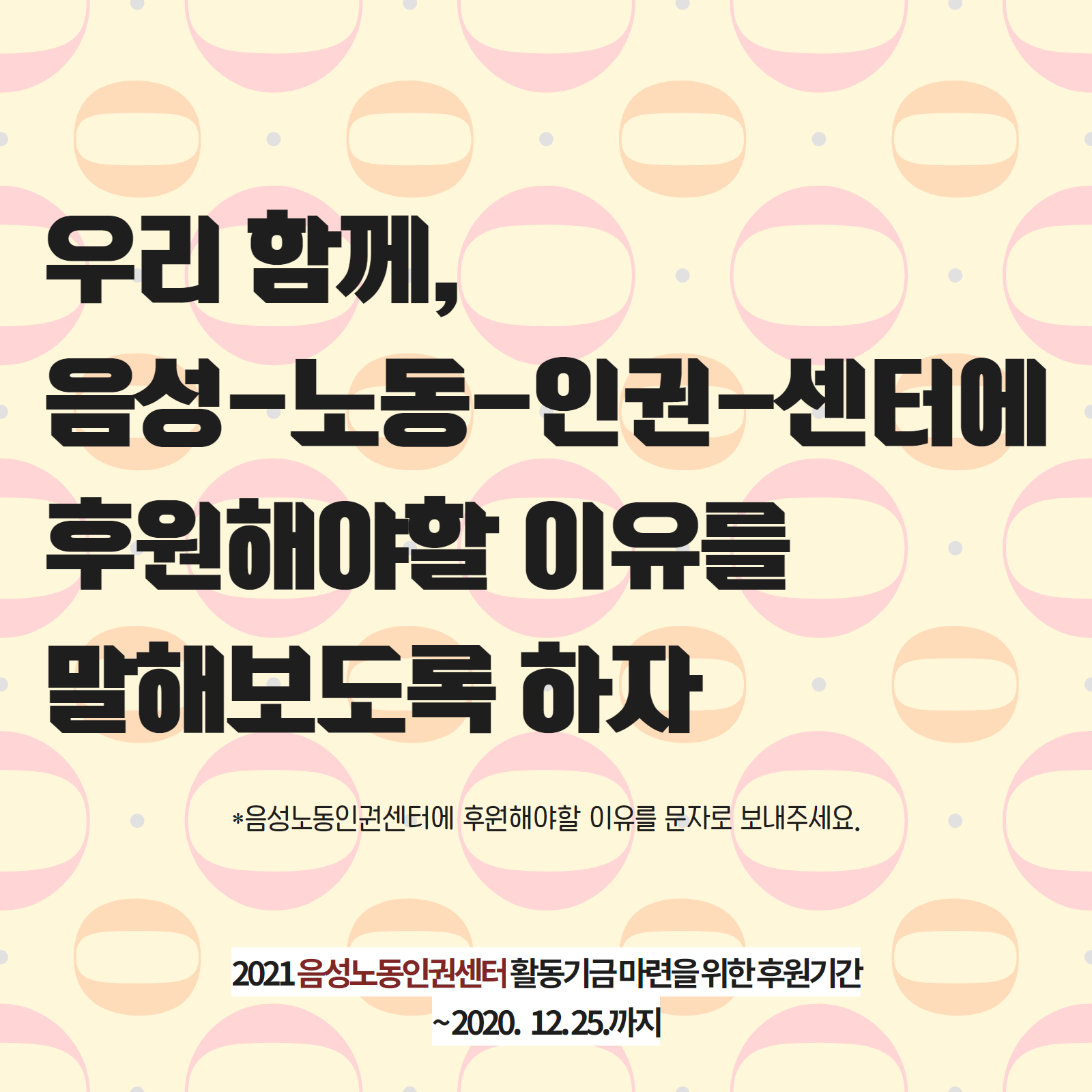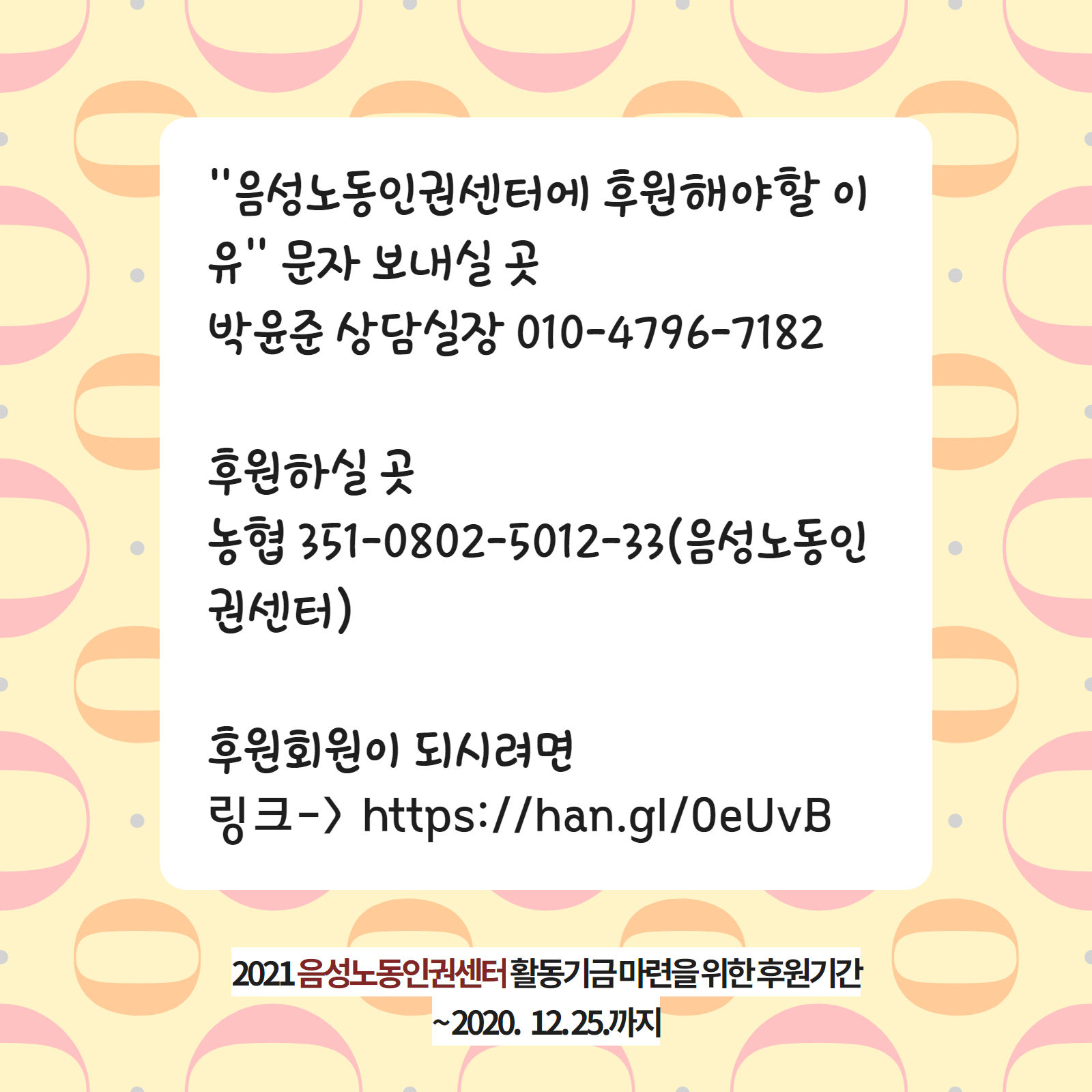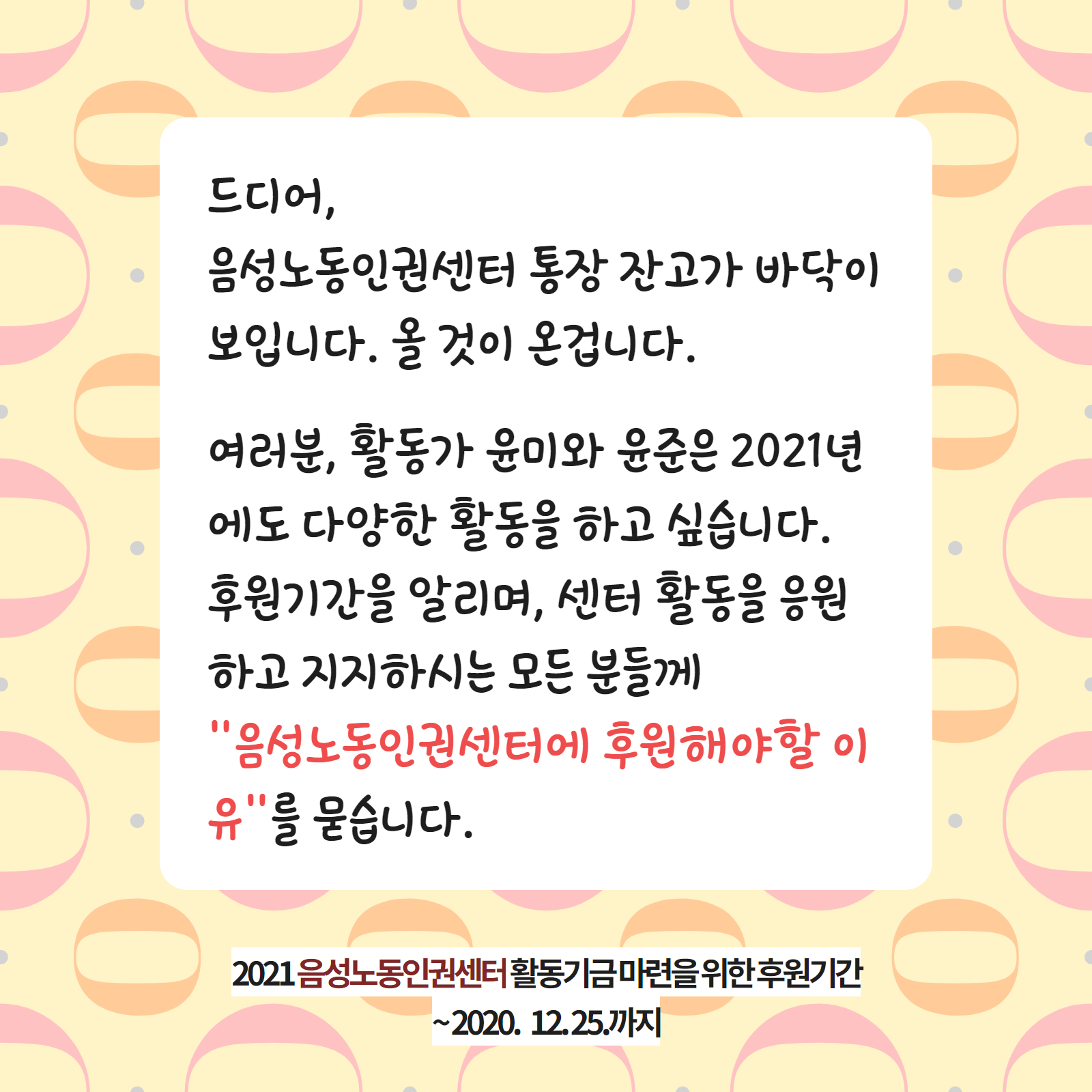 <2021 음성노동인권센터 활동기금 마련을 위한 후원기간 ~2020.12.25.까지>