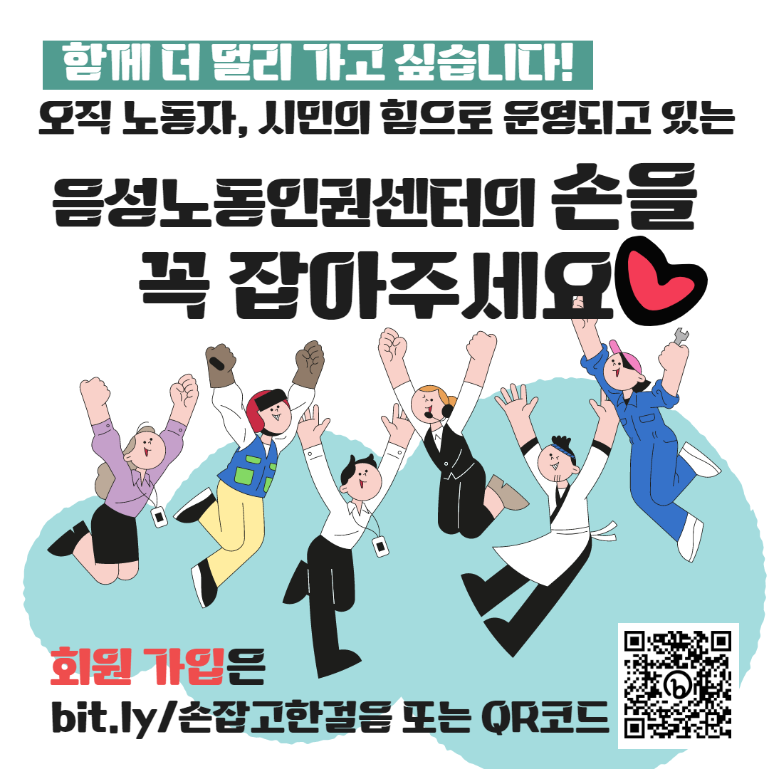 오직 노동자, 시민의 힘으로 운영되고 있는 인권센터가 계속해서 활동을 이어갈 수 있도록 인권센터의 손을 잡아주시길 부탁드립니다. 손잡고 함께 더 멀리 걸어가길 기대합니다!