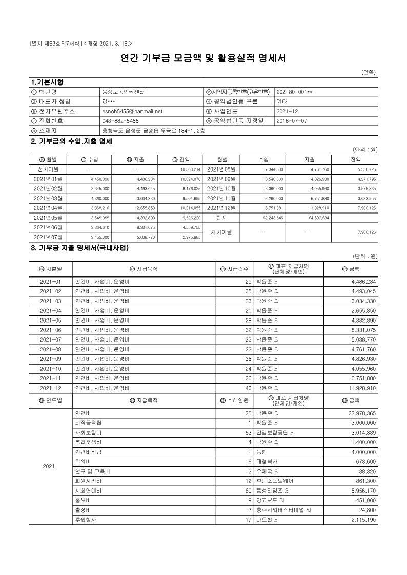 | 2020년 음성노동인권센터 연간 기부금 모금액 및 활용실적 명세서 (1) | 2021.04.29 |