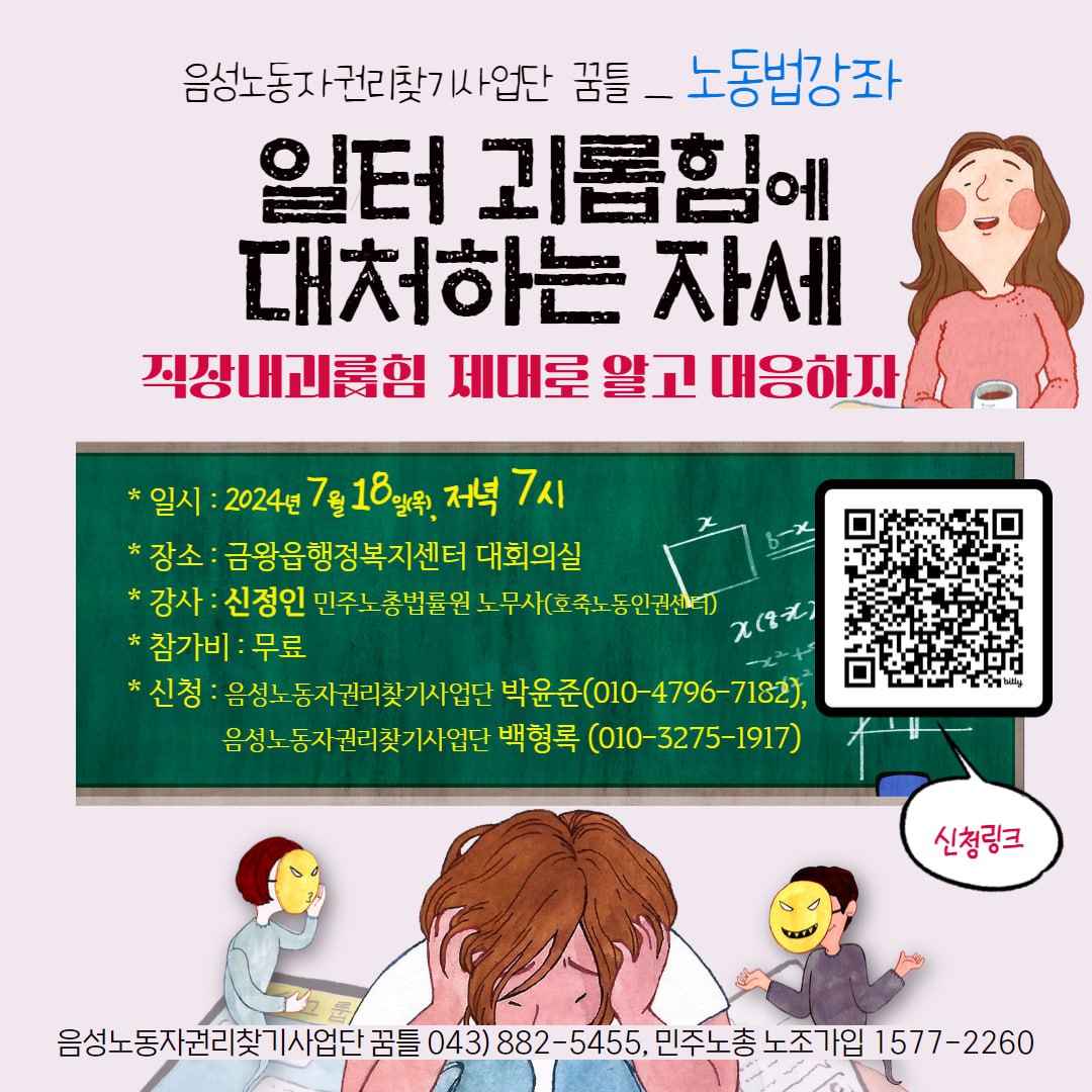 "직장 내 괴롭힘, 제대로 알고 대응하자!" 노동법 강좌를 아래와 같이 마련했습니다.