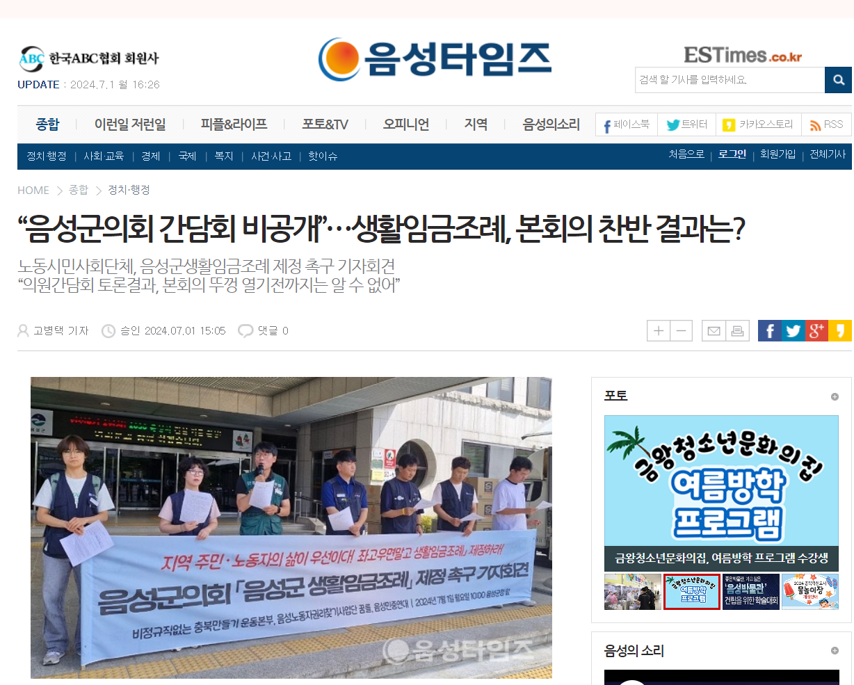 생활임금조례 제정 촉구 기자회견 관련 언론보도입니다~
