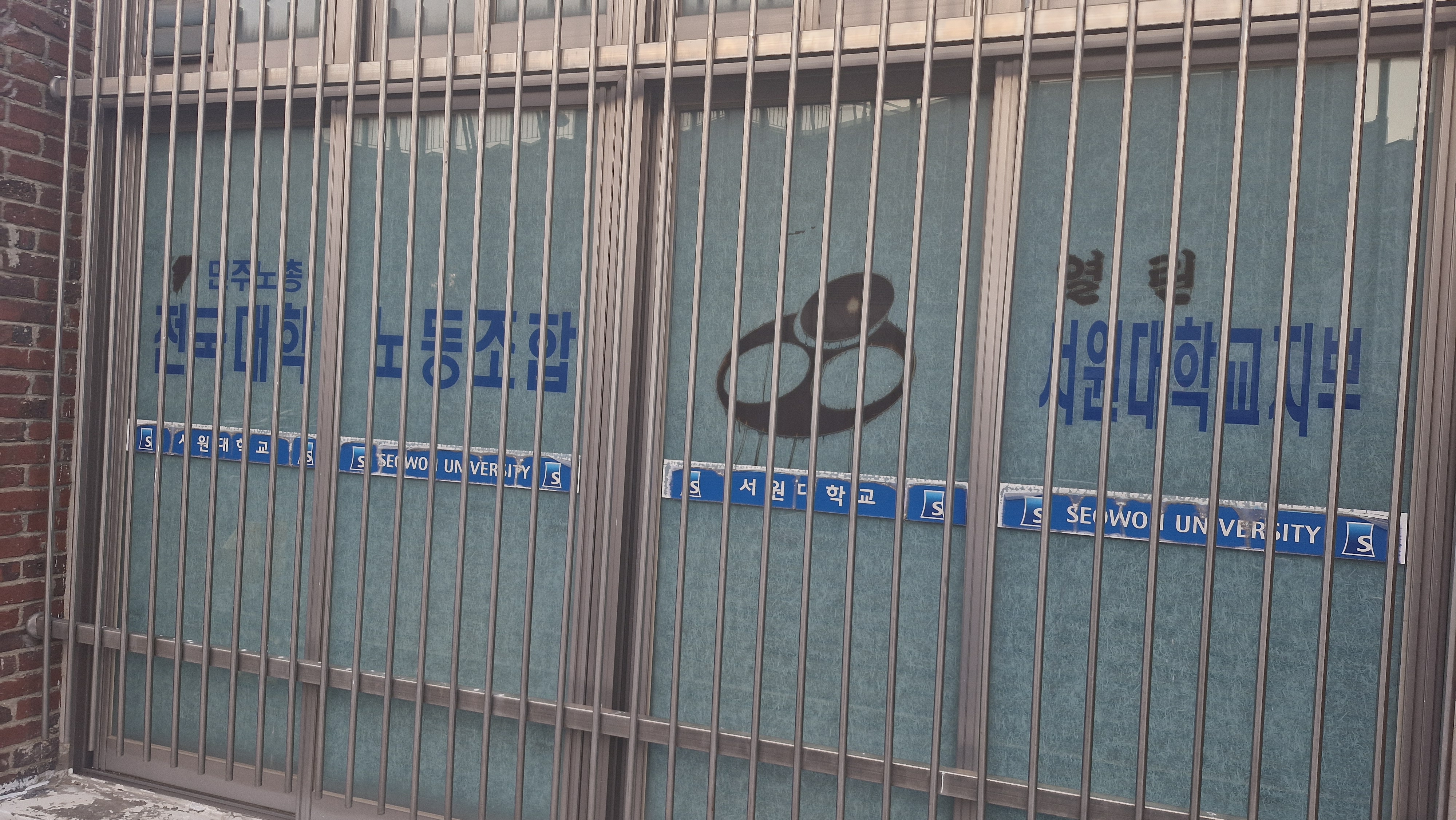 캠퍼스에 30분 정도 일찍 도착해서 한 바퀴를 돌았습니다. 육아휴직 기간에는 자주 오지 못했는데 오랜만에 간 캠퍼스에는 벚꽃이 흐드러지게 펴있었습니다. 오래된 노동조합 팻말과 빛바랜 창문 스티커들이 눈에 띄었습니다.