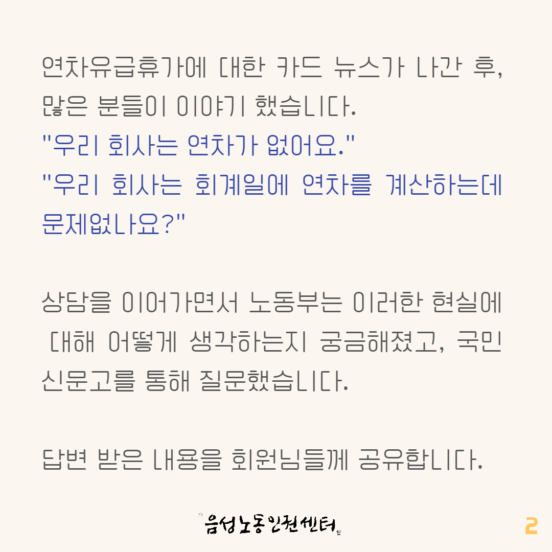 지난 번 연차휴가와 관련한 카드뉴스가 나간 후 많은 문의가 이어졌습니다.