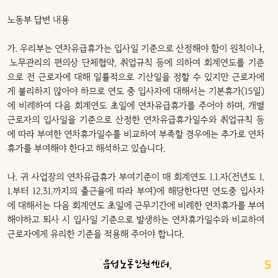 [월간노동상담-12월] 연차휴가에 대한 노동부 답변을 공유합니다