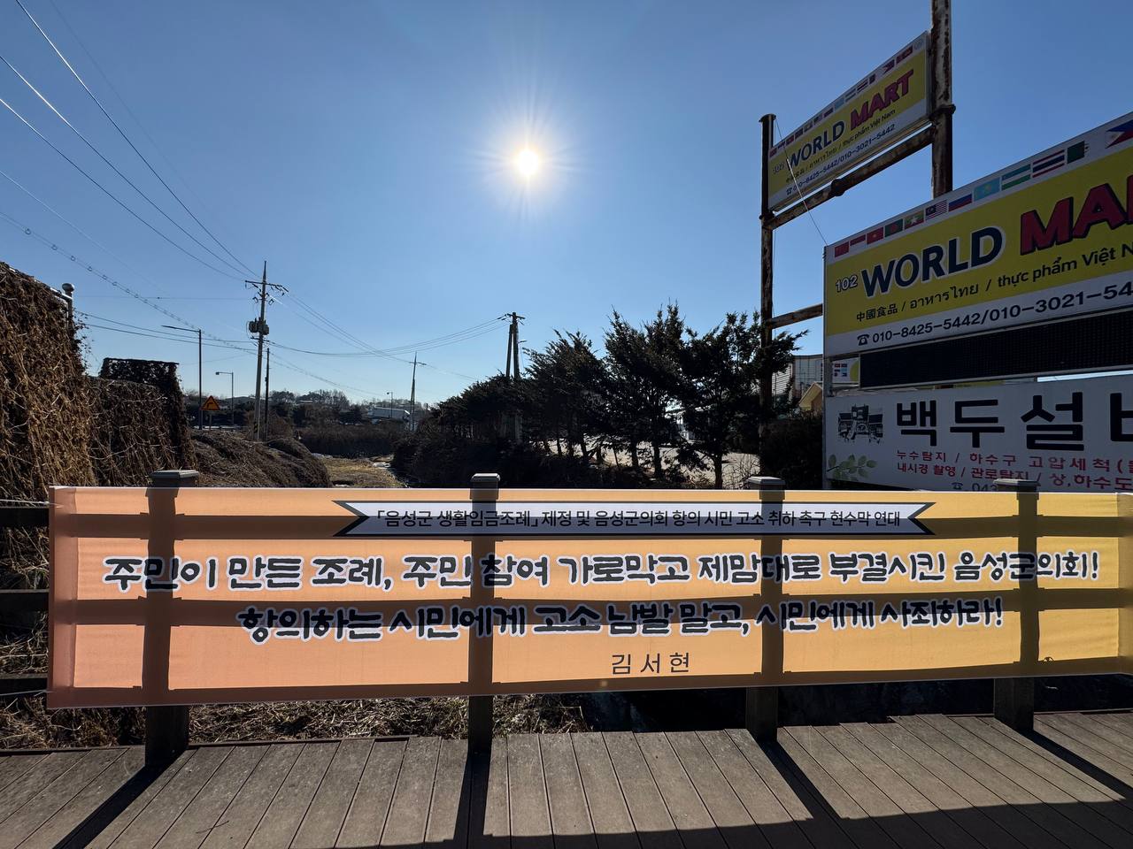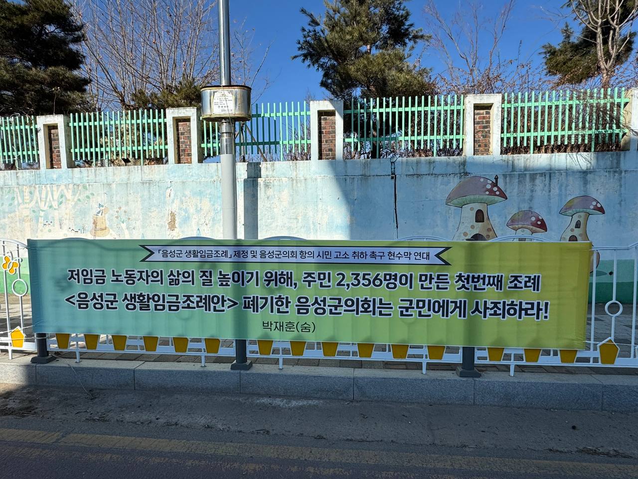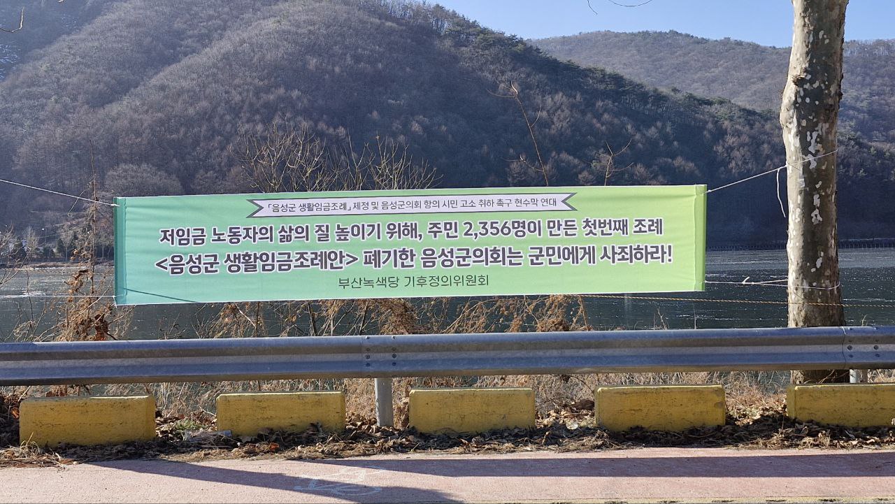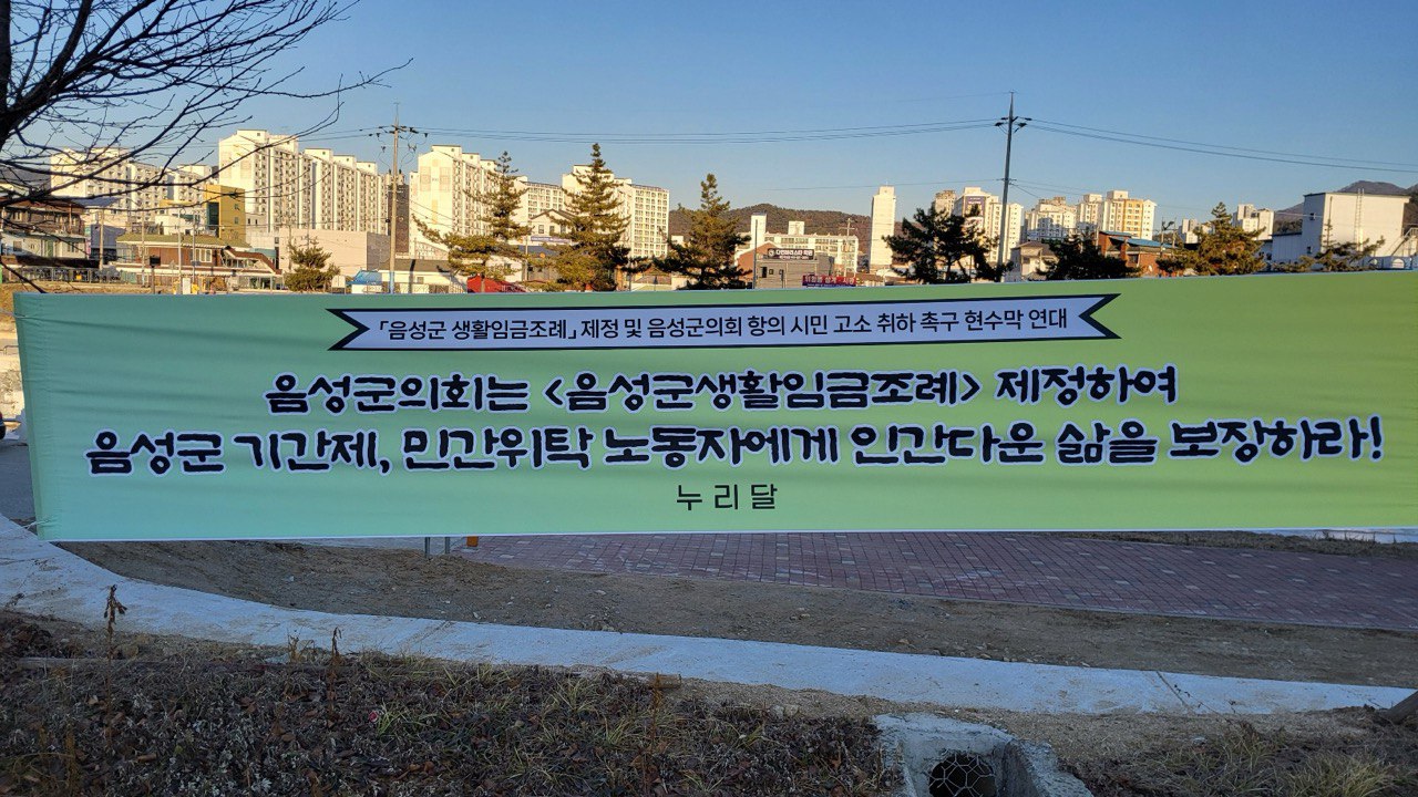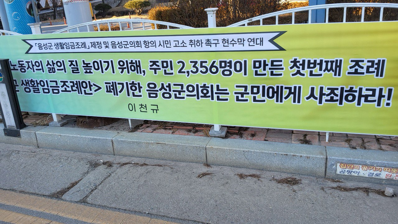 음성군 생활임금조례안를 부결시킨 음성군의회를 규탄하기 위해 2024년 12월 26일부터 2025년 1월 1일까지 규탄 현수막 연대 신청을 받았습니다. 그러자 전국에서 수많은 분들이 음성군의 풀뿌리 민주주의를 지키기 위한 손길을 건네주셨습니다.