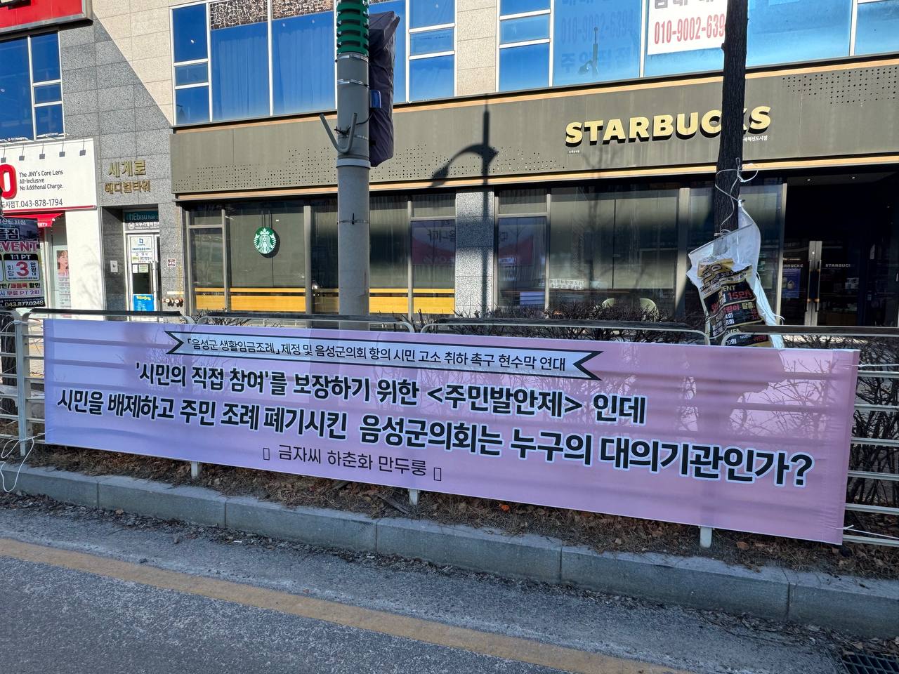 음성군의회 규탄을 위한 현수막 연대, 뜨거운 호응을 받았습니다