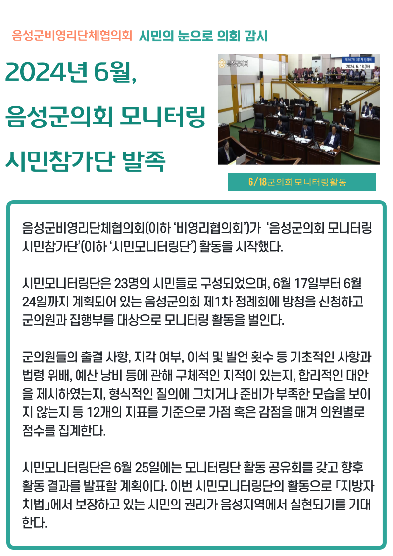 [비영리협의회] 음성군의회 모니터링 시민참가단이 발족했습니다!