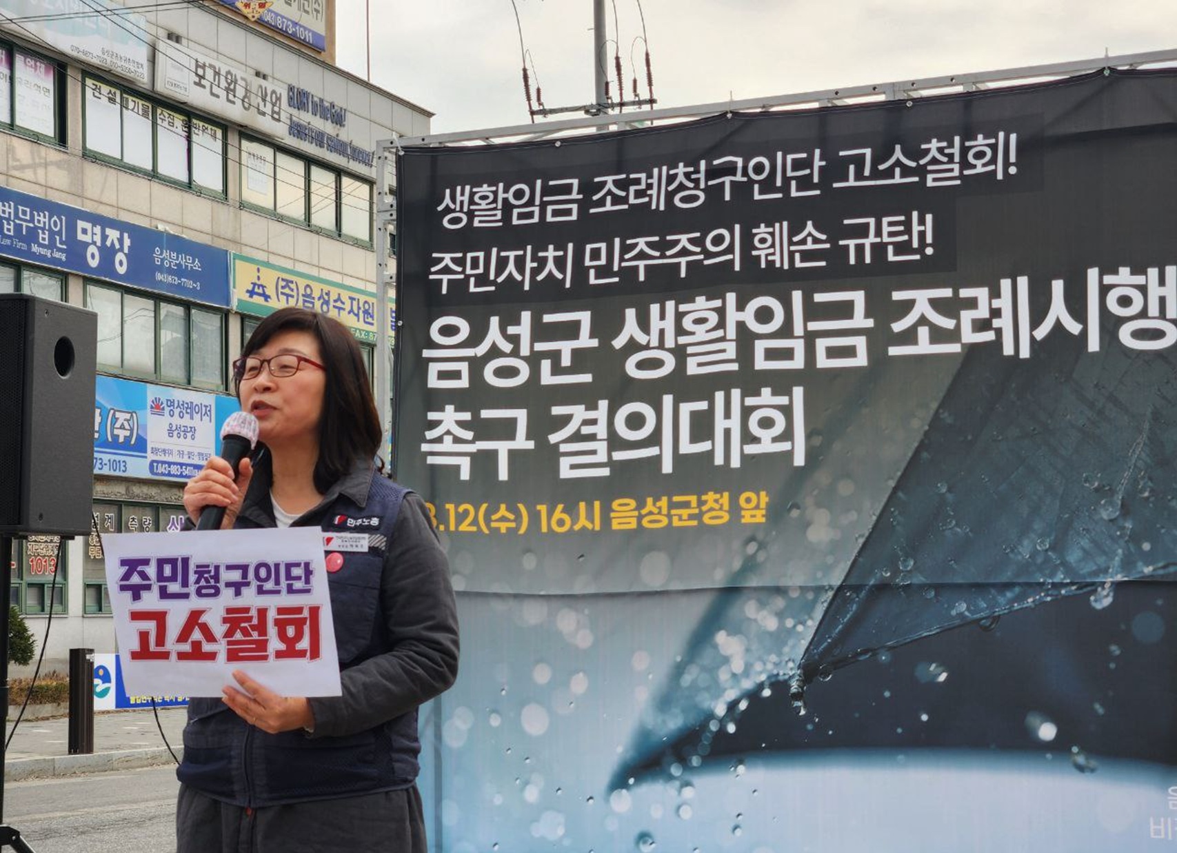 충북지역 노동시민사회단체와 음성군민 2,356명은 2023년 주민조례청구제도를 이용해「음성군 생활임금 조례」를 발의하였다. 2023년 3월부터‘실제 인간다운 생활이 가능한 수준의 임금’으로서 생활임금제도의 필요성을 알리며 음성군민들의 서명을 받았고, 그 해 9월 음성군의회에 주민조례청구가 수리되었다. 그러나 음성군의회는 약 10개월만인 2024년 7월 본회의에서 주민청구조례안을 일방적으로 폐기하며 군민들의 노력과 기대를 짓밟았다.