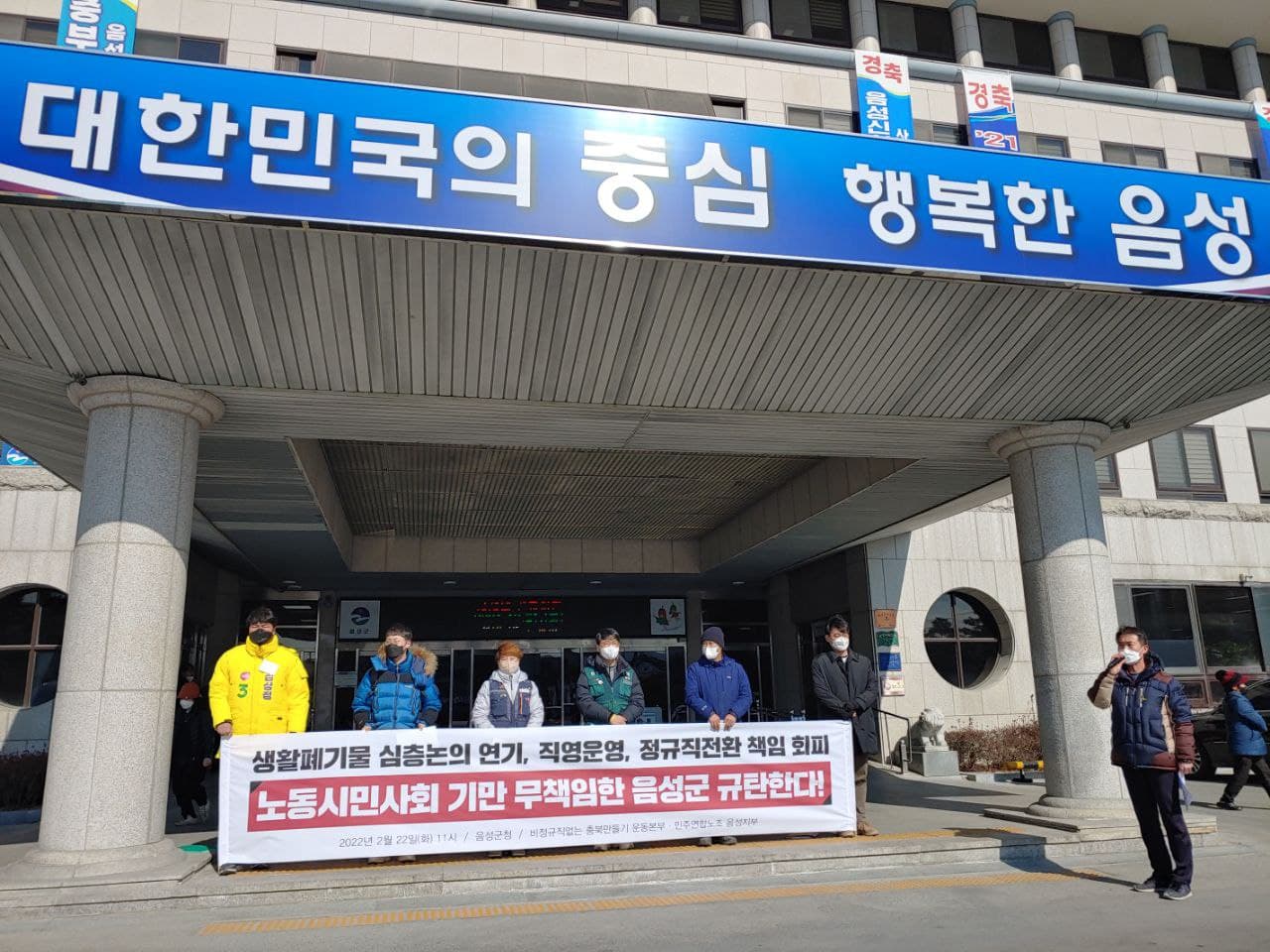 지역 행동/노동 정책 대응 음성군 생활폐기물 수집운반 민간위탁 직영운영 타당성 검토 심층논의 연기 규탄 기자회견(2022.2.22.) 음성노동인권센터 2022. 2. 22. 15:33 저작자표시 비영리 (새창열림)
