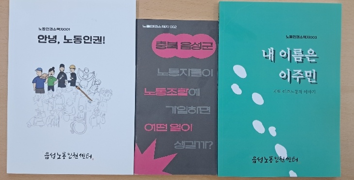 <꿈의 도시 꾸리찌바>(박용남, 2000)는 생태적인 대안 도시의 모델로 브라질의 꾸리찌바라는 도시를 소개하는 책입니다. 교통 체증과 환경오염, 불평등한 주거 형태와 도시 공간과 같은 현대 도시들이 겪고 있는 전형적인 문제들을 이 도시가 어떻게 개선해갔는지 이 책에 자세히 서술되어 있는데, 그중에 꾸리찌바 시에 대한 역사, 문화, 자연, 생태, 환경을 어린이들도 알기 쉽게 체계적으로 정리한 <리쏭에 꾸리찌바나스>라는 안내서에 대한 소개가 나옵니다. 초등학교 1학년부터 4학년까지 모든 초등학생들이 열 권의 책을 읽으면서 자신들이 살고 있는 도시에 대해서 이해하고, 사랑하게 되고, 그 책들을 후배들에게 되물림해주는 문화가 있다고 합니다. 이러한 ‘지역학’적인 시도가 인상 깊었습니다. 리쏭에 꾸리찌바나스에 영감을 받아 센터에서도 나름대로 지역의 ‘노동인권’과 관련한 이야기들을 소책자의 형태로 만들어 펴내면 좋겠다고 박 실장이 제안하였고, 운 좋게도 충북시민사회지원센터의 사회변화 공익활동 지원사업에 선정되면서 금전적인 걱정 없이 소책자를 제작할 수 있었습니다. 2022년 지역 노동인권 실태 전반을 다룬 <안녕, 노동인권!>을 냈고, 2023년에는 음성지역 노동조합에 관한 주제로 <충북 음성군 노동자들이 노동조합에 가입하면 어떤 일이 생길까?>, 그리고 2024년에는 음성지역 이주노동자들과의 인터뷰를 엮은 <내 이름은 이주민>을 냈습니다. 인권센터가 다루고 싶은 주제들은 무궁무진합니다. 음성지역 농민들의 이야기, 여성 노동자, 장애인 노동자들의 삶과 일터, 기후위기와 노동에 관한 주제 등등… 내가 살고 있는 지역에 대해 아는만큼 이 지역을 사랑할 수 있을 거라 생각합니다. 그럼, 다음 소책자도 기대해주세요!