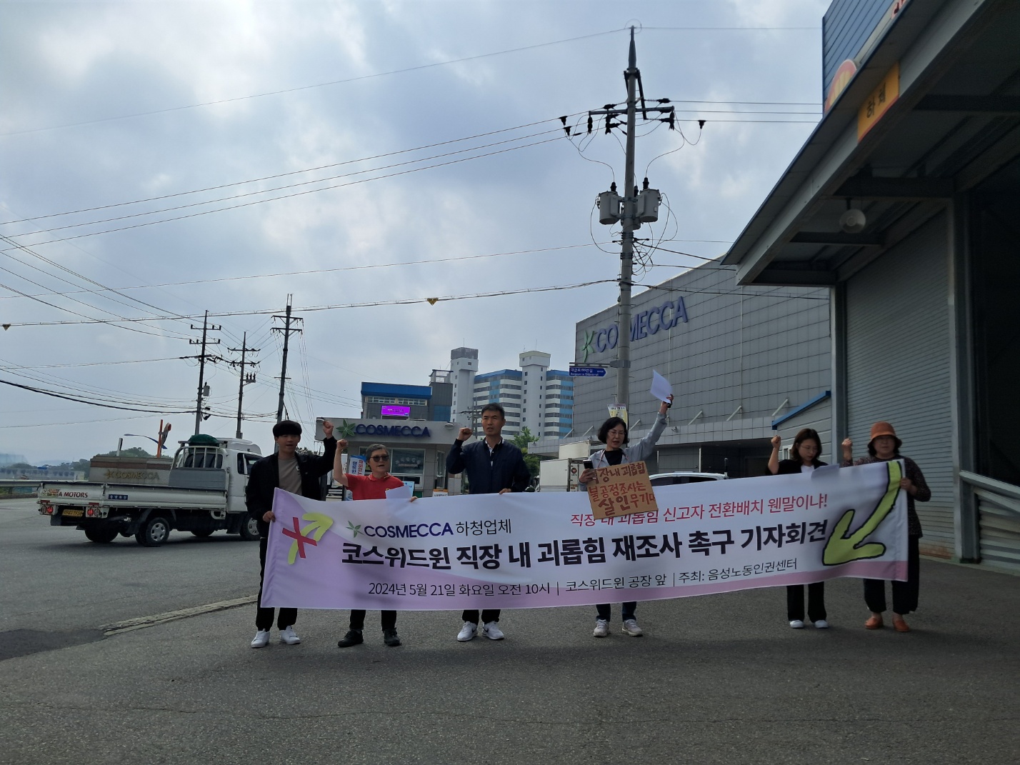 충북 음성군 대소면에 위치한 화장품 공장 '코스메카코리아'의 하청업체 '코스위드윈'이 직장 내 괴롭힘 신고자를 전환배치 했습니다.
