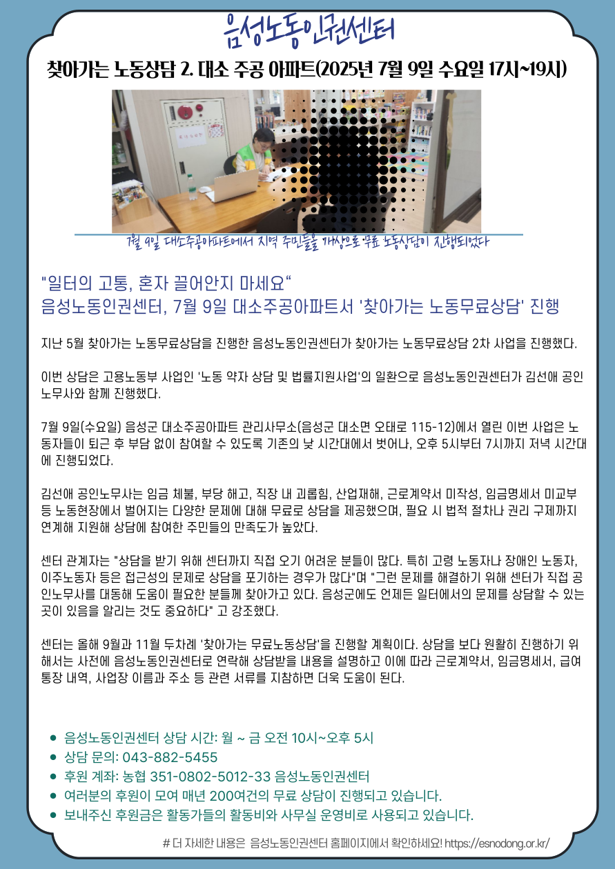 찾아가는 무료 노동상담 2. 대소주공아파트