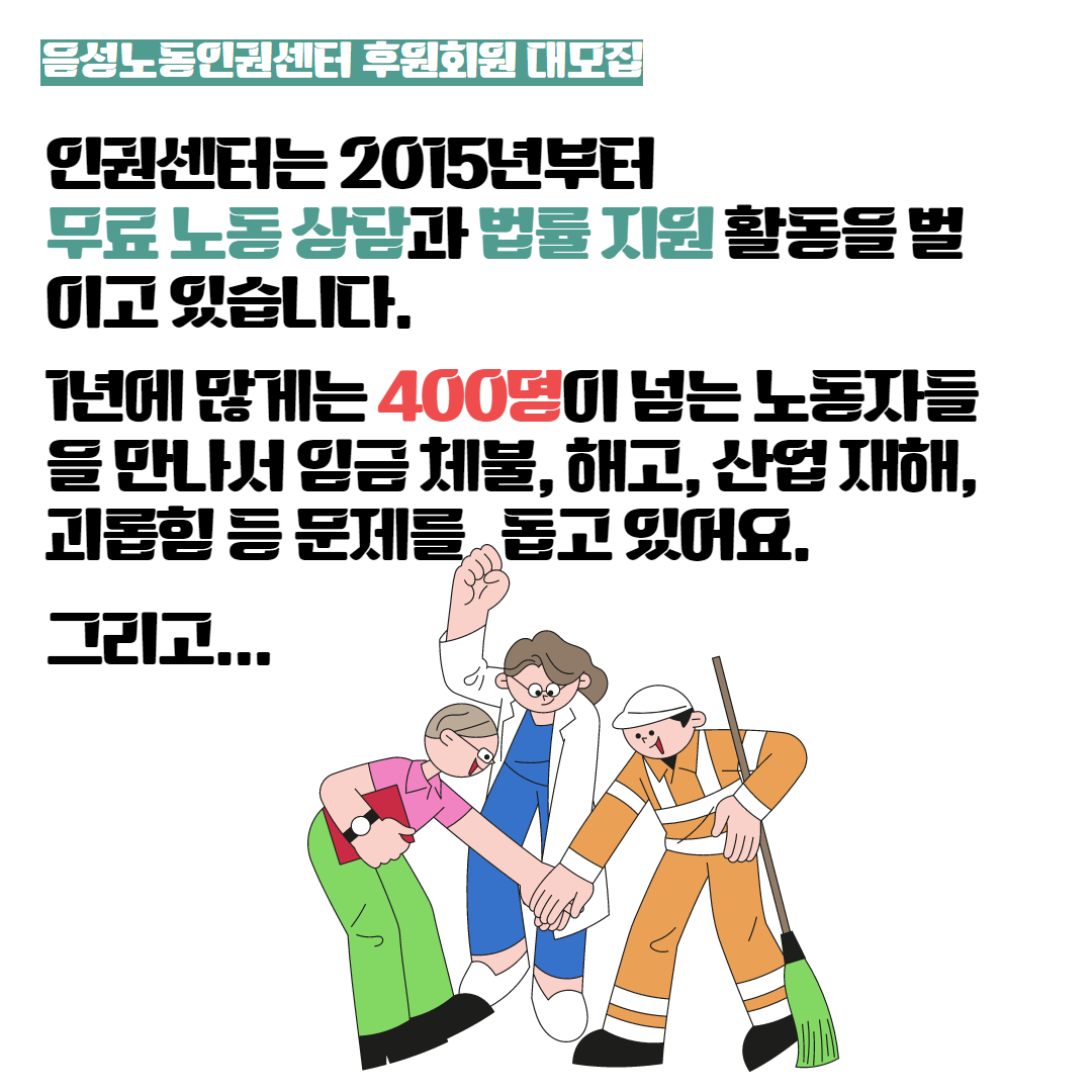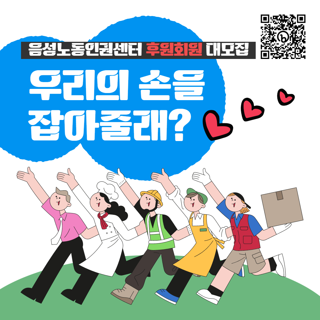 오직 노동자, 시민의 힘으로 운영되고 있는 인권센터가 계속해서 활동을 이어갈 수 있도록 인권센터의 손을 잡아주시길 부탁드립니다. 손잡고 함께 더 멀리 걸어가길 기대합니다!