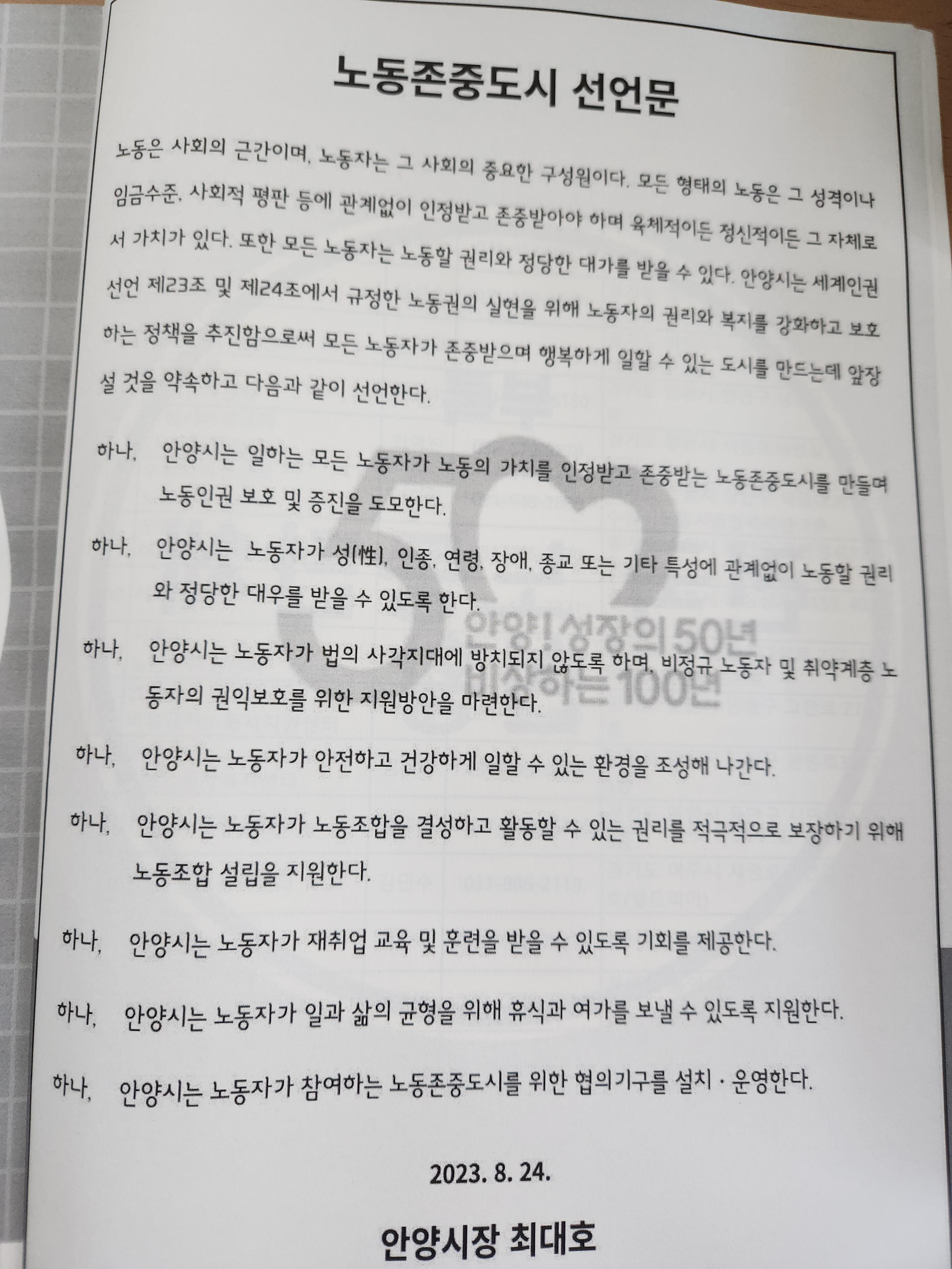 음성노동인권센터 활동가들이 2023년 제6회 한국비정규노동박람회 "변화와 도전"에 다녀왔습니다. 노동존중도시를 선언한 안양시와 선언을 이끈 안양시노동인권센터로부터 많은 감명을 받고 돌아왔습니다. 아래는 박람회에서 진행된 내용입니다.